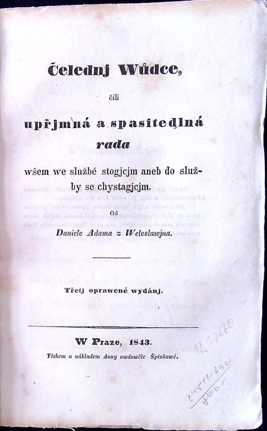 Čelednj Wůdce, čili upřjmná a spasitedlná rada wšem we službě stogjcjm aneb do služby se chystagjcjm.