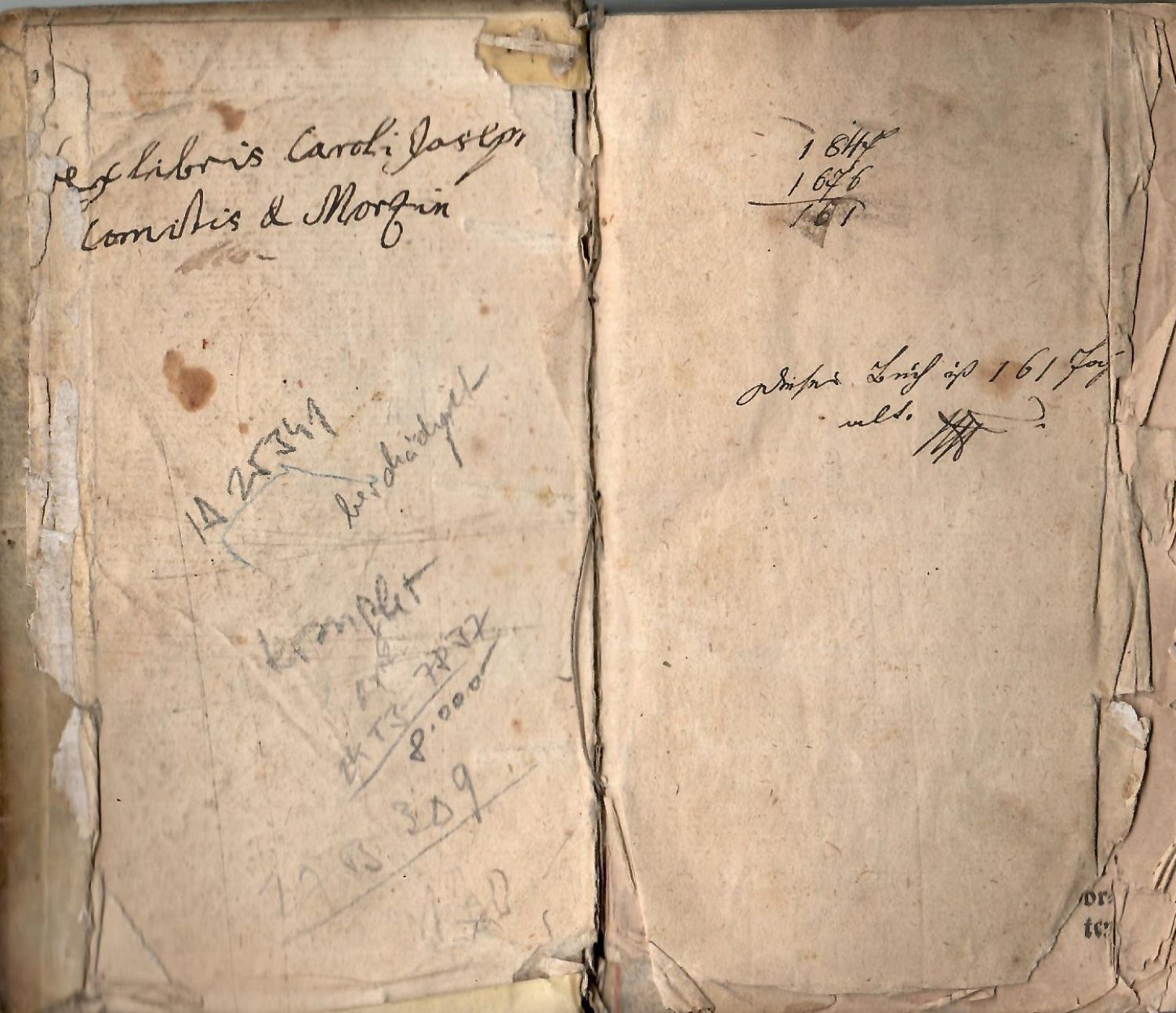 Červeno-černě tištěný titulní list, tištěno švabachem, živá záhlaví od sazby oddělená jednoduchou linkou, ozdobné tyče z drobných ornamentů, vstupní inicála propletená úponky zalomená do výše 6 řádků, tiučně tištěné plné iniciálky ve výši 2 řádků. <br>Dobová pergamenová vazba, barvená svrchní ořízka. Na předním přídeští perem vlastnický zápis "Ex libris Caroli Joseph Comitis Morzin". Titulní list a první tři listy při vnějším okraji okousané, str. 207-294 při vnějším okraji roztřepené, od strany 295 až do konce při vnějším okraji okousané (na několika listech po okraj textu).<br>Karel Josef František hrabě z Morzinu (1717 b- 1783) český šlechtic, byl prvním mecenášem Josepha Haydna, kterého zaměstnal jako svého kapelníka na zámku Dolní Lukavice u Plzně.