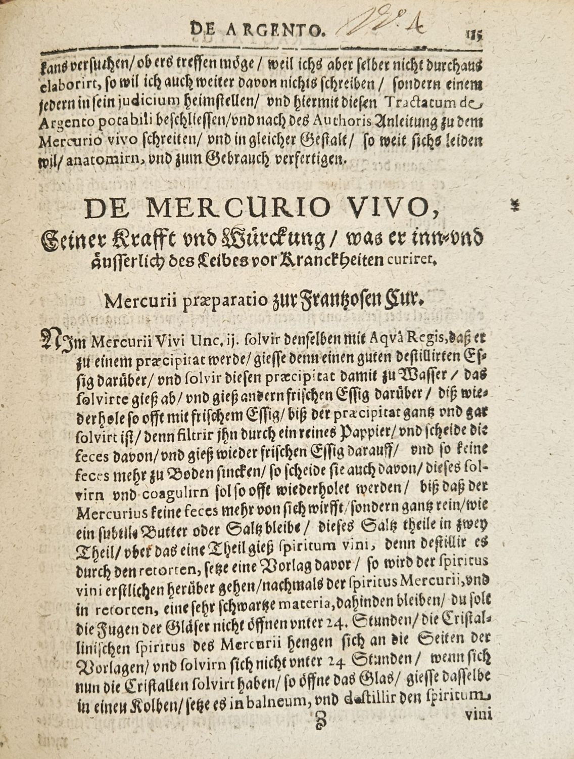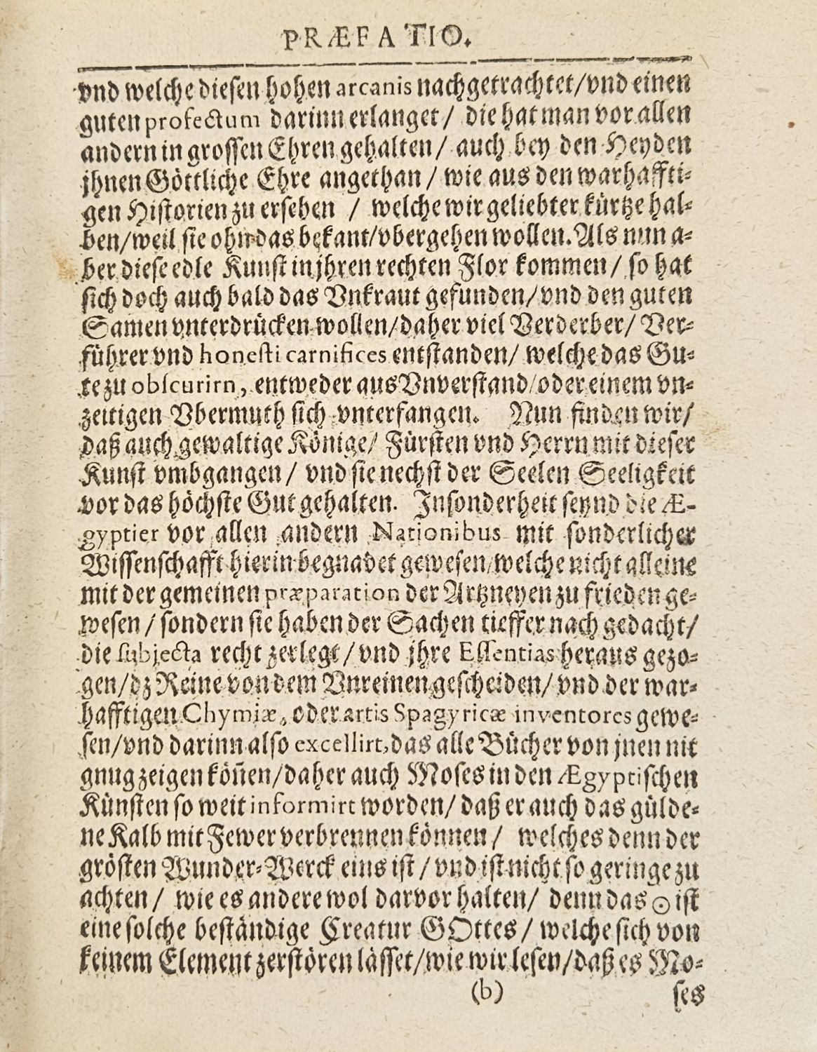 Tištěno švabachem, latinská slova antikvou, živá záhlaví od sazby oddělená jednoduchou linkou. Dvoubarevně tištěný druhý titulní list.Od strany 160 chybná paginace (místo strany 161 strana 107 a pak chybně paginováno až do konce). Na posledních 16 loistech rejstřík se samostaným titulním listem.<br>Kartonová vazba se zbytky pokryvu z tragantového pap. na přední desce, pergamenový hřbet, na tit. listu staré razítko neurčené zednářské lóže a perem napsané jméno jednoho z předchozích vlastníků. Chybí poslední list rejstříku. Druhý díl vyšel o rok později u stejného nakladatele v Lipsku.<br>Johann Agricola (21.3. 1590 Neunburg - 1.4. 1668 Breslau) lékař, alchymista a odborník přes sůl. Roku 1622 byl jmenován vrchním dozorcem sasko-altenburské solnice, kde provedl různá technická zlepšení a zavedl třídění solanky. Od roku 1645 až do své smrti zastával úřad městského fysika ve Vratislavy.