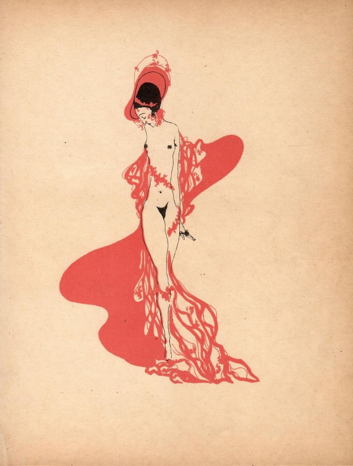 Jeden z 500 vydaných exemplářů. Album vyšlo samostatně jako doplněk dvou Wedekindových knih "Pandora" a "Erdgeist", které autor vyzdobil svými celkem 24 ilustracemi. V námi nabízeném souboru je ilustrací 26. Původní kartonová vazba s chlopněmi, potažená světle červeným papírem a pergamen. hřbetem, na přední desce vazby tlačený a zlacený název. Vazba zašpiněná, pergamen. pokryv hřbetu též místy zašpiněný. V albu jsou volně vložené jednotlivé listy o celkovém rozměru 278 x 220 mm, dvoubarevně tištěné (červeno-černě).<br>Alastair, vlastním jménem Hans Henning von Voigt (20.10. 1887 Karlsruhe - 30.10. 1969 Mnichov), kreslíř, ilustrátor, překladatel a spisovatel, pianista, tanečník, světoběžník a mystifikátor. (Dle některých pramenů byl nelegitimním synem anglického krále Edvarda VII. a jeho španělské milenky, zpěvačky rusko-židovského původu). Výtvarným vzděláním autodidakt, byl ovlivněn secesí a na jeho styl měli mimo jiné vliv Beardsley, Bakst, Somoff. Ve svém "wedekindovském" cyklu postaveném na kontrastu černé, červené a bílé zobrazil erotizující scény ve zkreslené perspektivě v kontrastu s plochou zdobenou krajkovím, řásněmi a různými doplňky oděvu.