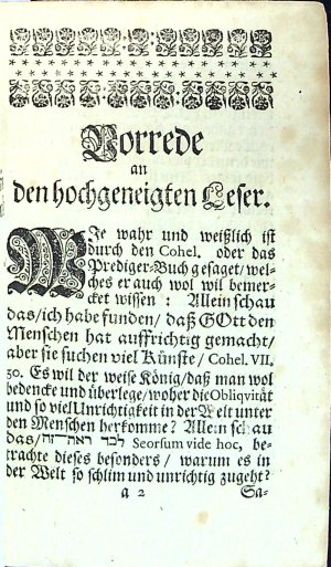 Tištěno švabachem, latinský text antikvou. Červeno-černě tištěný titulní list. Neživá záhlaví od sazby oddělená jednoduchou linkou, dvě pásové lišty z ornamentů, rostlinné viněty, drobné tiskařské ozdůbky, jednoduché linky, plné iniciály propletené úponky zalomené do výše 2-5 řádků. Kniha se skládá ze tří částí, na straně 145 mezititul druhé části a na straně 391 části třetí.