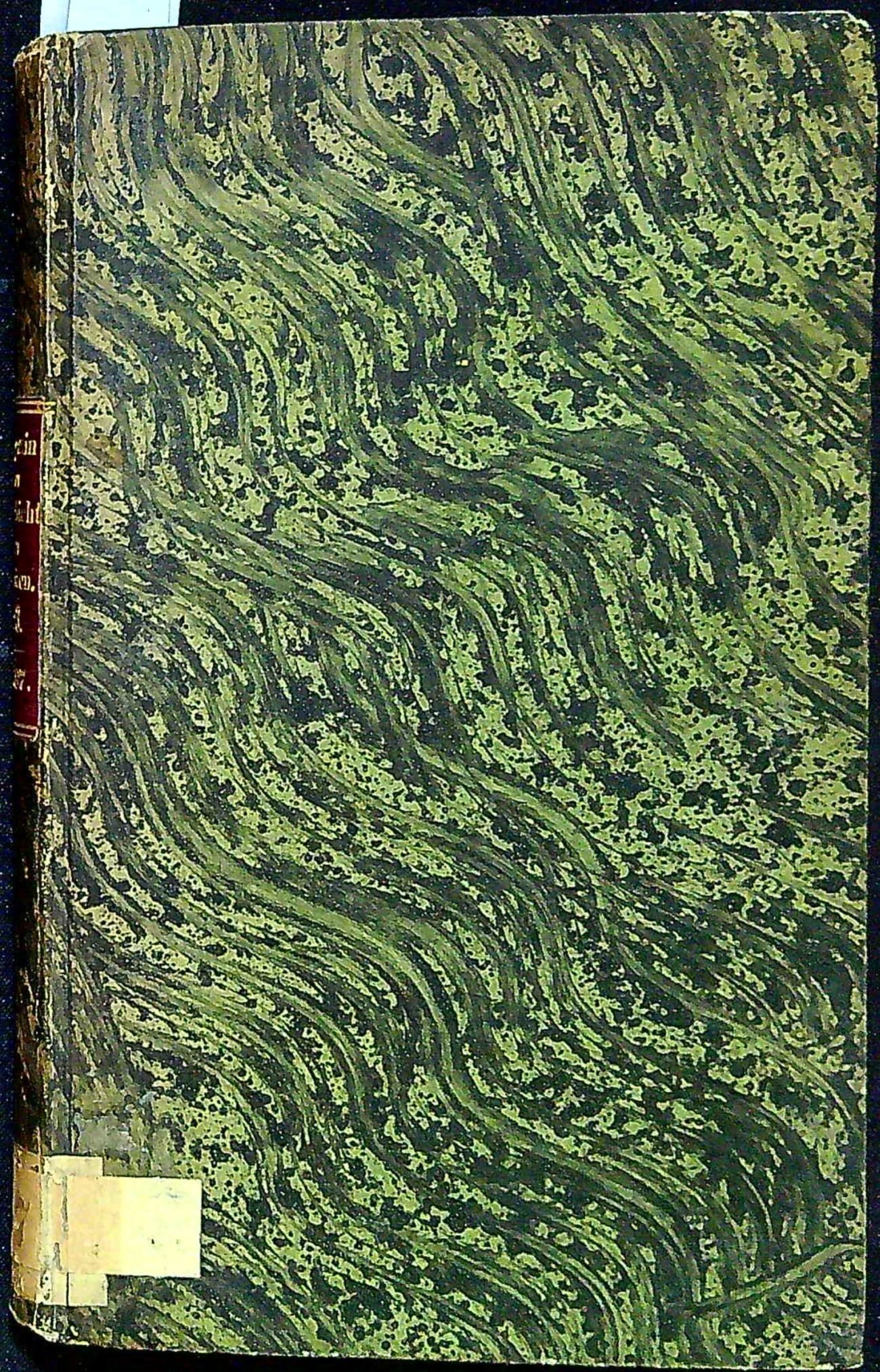 Dobová vazba s kartonovými deskami potaženými mramorovaným papírem, ve hřbetu kožený štítek s tlačeným a zlaceným názvem s datací tisku, přes spodní okraj hřbetu přelepen starý papírový knihovnický štítek s číslem, stříkané ořízky. Na titulním listu staré razítko zednářské lóže "Loge zu den drei Weltkugeln". Na předním přídeští nalepeno ex libris Gustava Partheye. Na několika listech při spodním vnějším okraji oslí