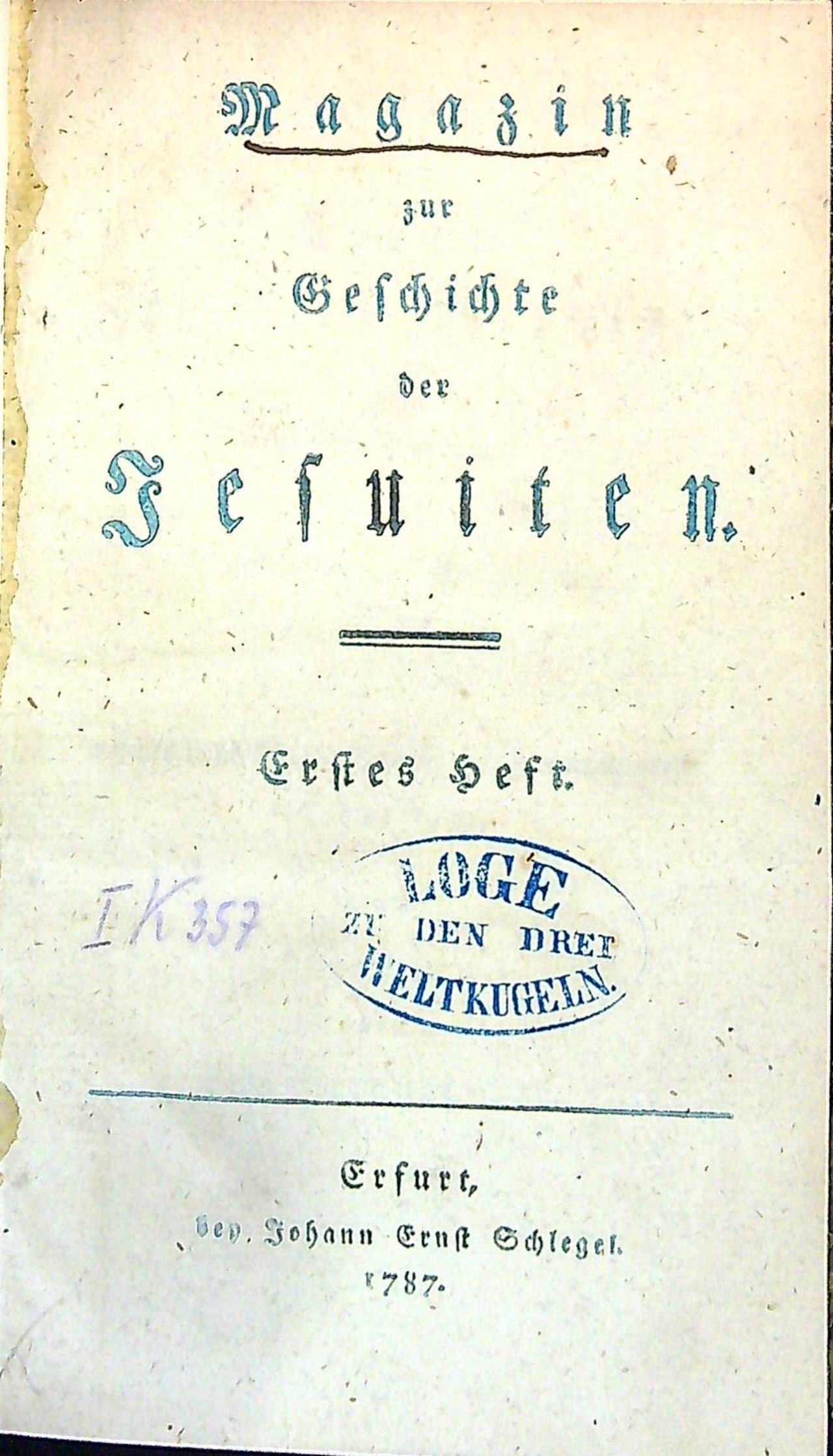 Magazin zur Geschichte der Jesuiten. Erstes bis Drittes Heft. (Komplet).
