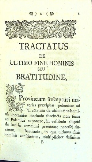 FRAGMENTUM POLEMICUM AD TRACTATUM DE ULTIMO FINE HOMINIS SEU BEATITUDINE JUXTA INCONCUSSAM SACRAE ROMANAE ECCLESIAE FIDEM PER TRACTATUM Atque In gratiam et usum Studiosa Juventutis Theologico-Positiva, PRAECIPUE ORIDINIS SERVORUM b.m.v. COLLESTUM. A P. PIO MARIA AUER, ejusdem Ordinis Servorum B.M.V. in Conventu S. Michaëlis Arch-Angeli Veteris Pragae SS. Theologiae Lectore Actuali.