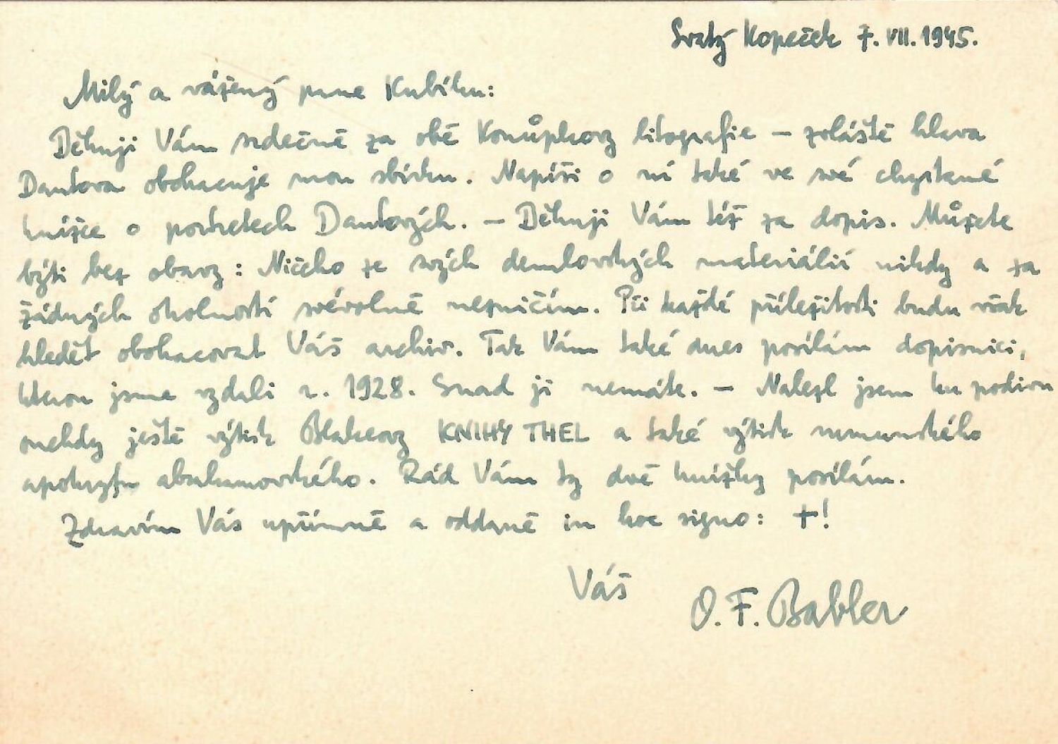 Datováno na Svatém Kopečku 7. VII. 1945.