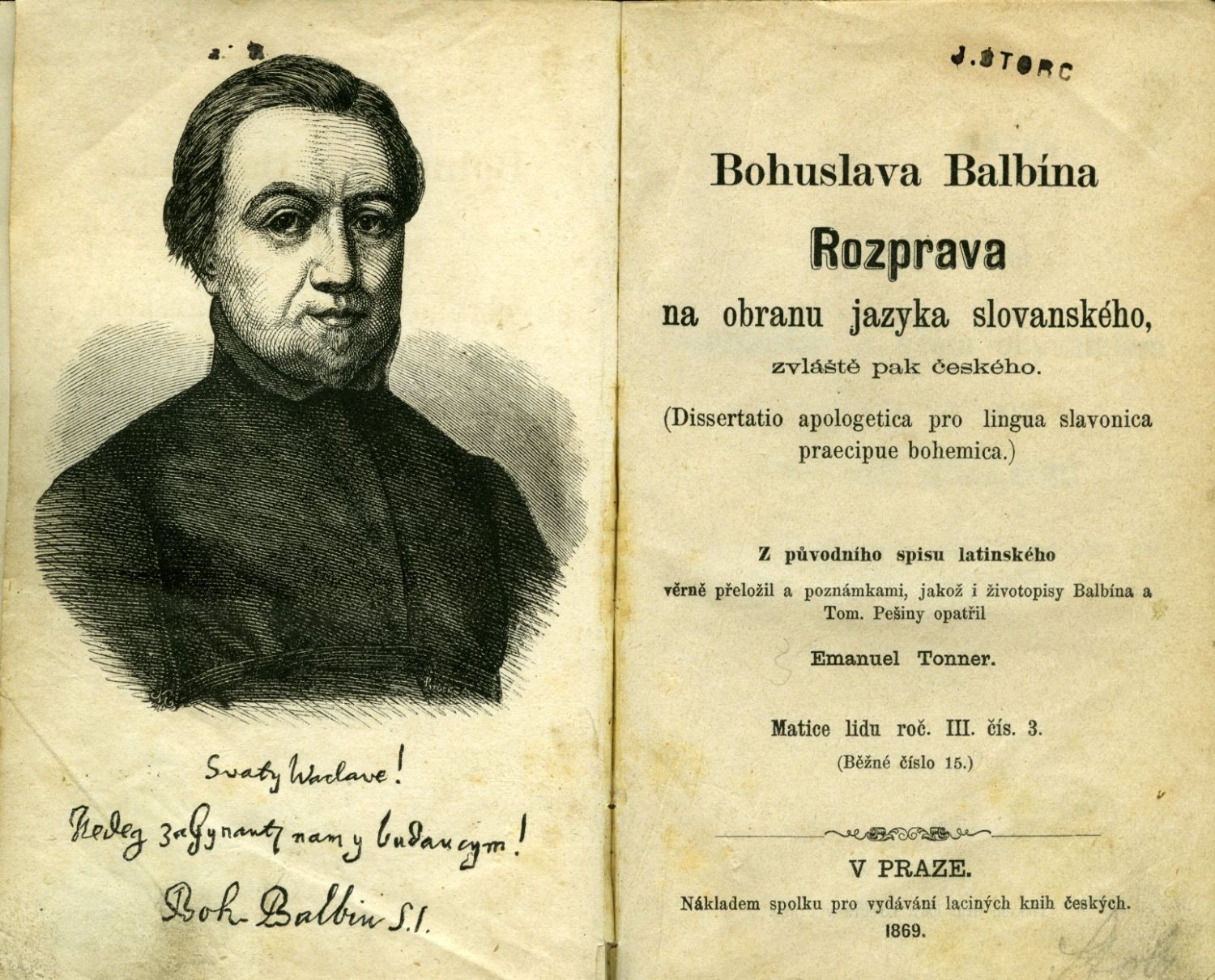 Rozprava na obranu jazyka slovanského, zvláště pak českého. ... Z původního spisu latinského věrně přeložil a poznámkami, jakož i životopisy Balbína a Tom. Pešiny opatřil Emanuel Tonner. ...