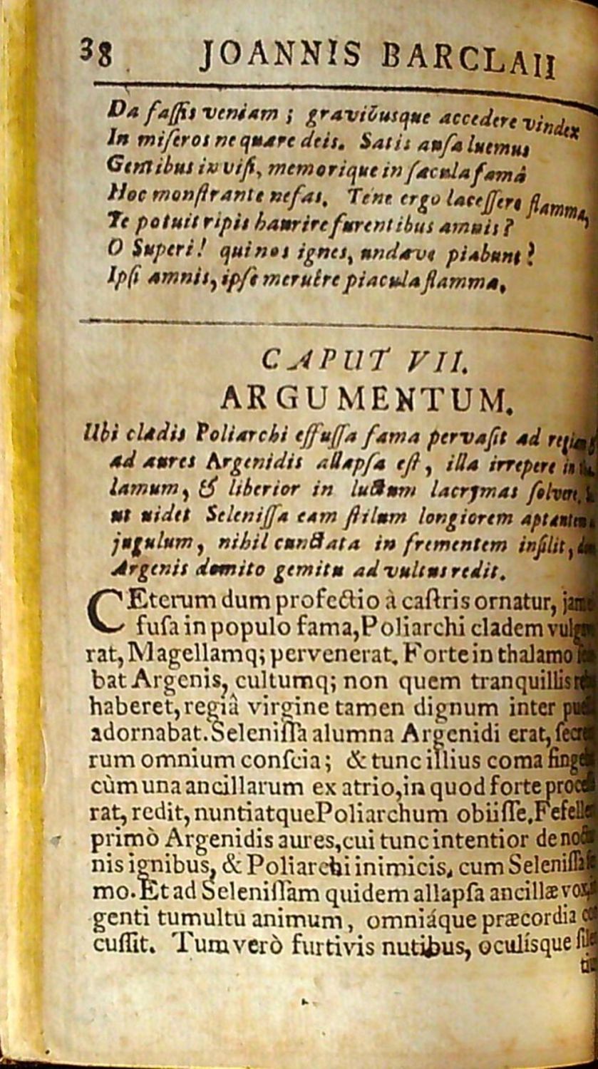 JOANNIS BARCLAII ARGENIS, Figuris aeneis adillustrata , suffixo CLAVE, hoc est, Nominum Propriorum Explicatione, atque Indice Locupletissimo. Cum Privilegio Sac. Caes. Majest. et Electoris Saxoniae.