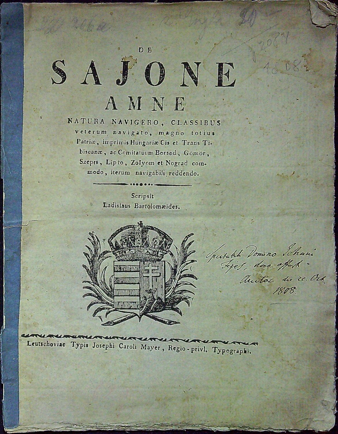DE SAJONE AMNE NATURA NAVIGERO, CLASSIBUS veterum navigato, magno totius Patriae, imprimis Hungariae Cis et Trans Tibiscanae, ac Comitatuum Borsod, Gömör, Szepes, Lipto, Zolyom et Nograd commodo, iterum navigabili reddendo.