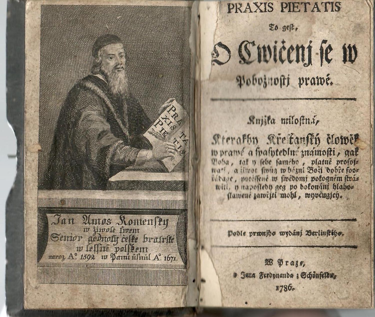 PRAXIS PIETATIS To gest. O Cwičenj se w Pobožnostj prawé. Knjžka milostná, Kterakby Křesťanský člowěk w prawé a spasytedlné známosti, gak Boha, tak y sebe samého, platně prospjwati, a žiwot swůg w bázni Božj dobře spořádage, potěsseně w swědomj pokogném stráwiti, y naposled geg po dokonánj blahoslaweně zawřjti mohl, wyučugjcý. Podle prwnjho wydánj Berlinského.