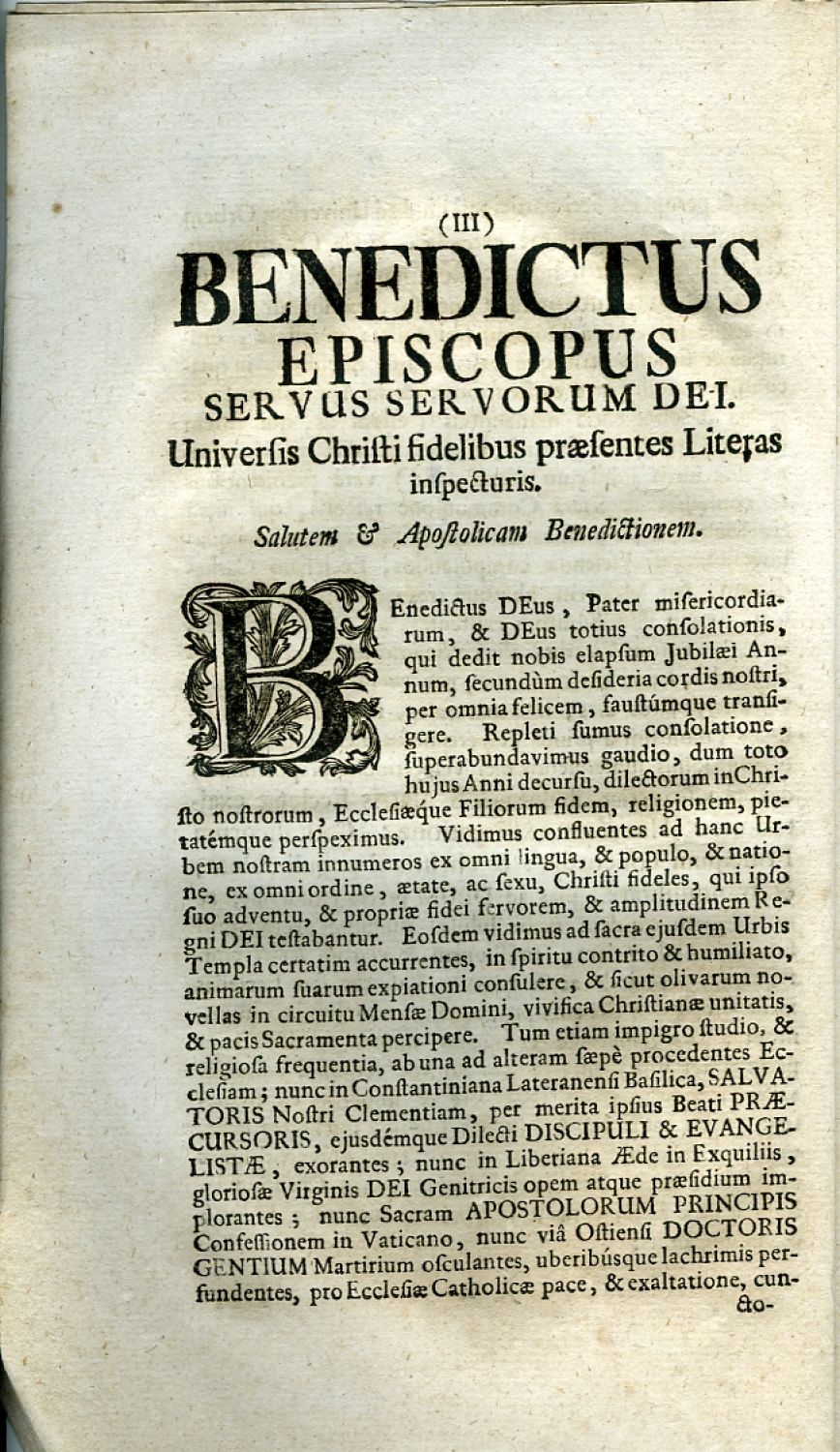 EXTENSIO UNIVERSALIS JUBILAEI IN URBE CELEBRATI ANNO DOMINI M. DCC. L. AD UNIVERSUM CATHOLICUM ORBEM.