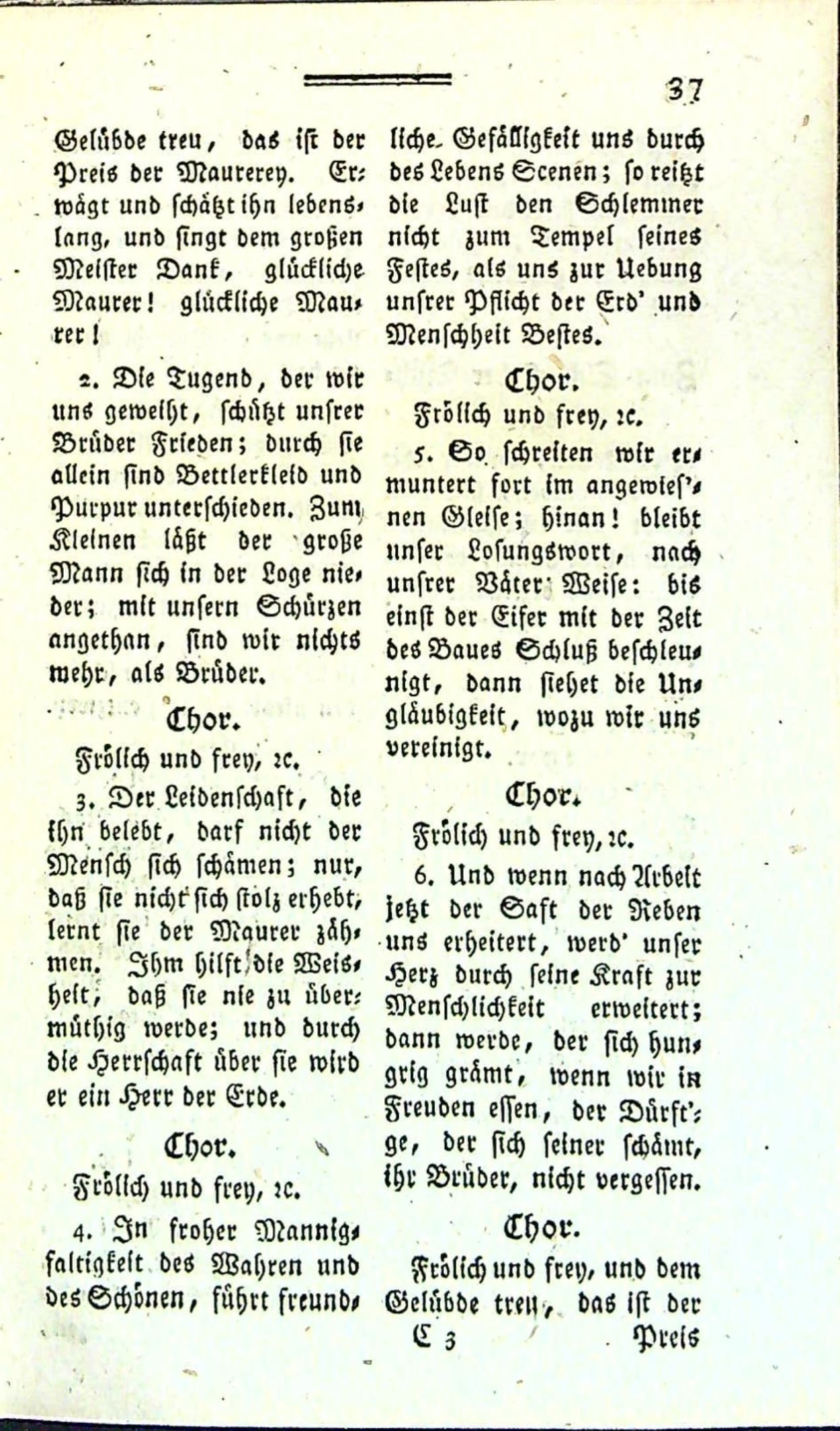 Tištěno švabachem ve dvou sloupcích, uprostřed horního okraje stran dvojitá mizící linka, v úvodu předmluva vydavatelova datovaná v Gdaňsku 20.3. 1784. Tučně tištěné versálky ve výši 1-2 řádků.