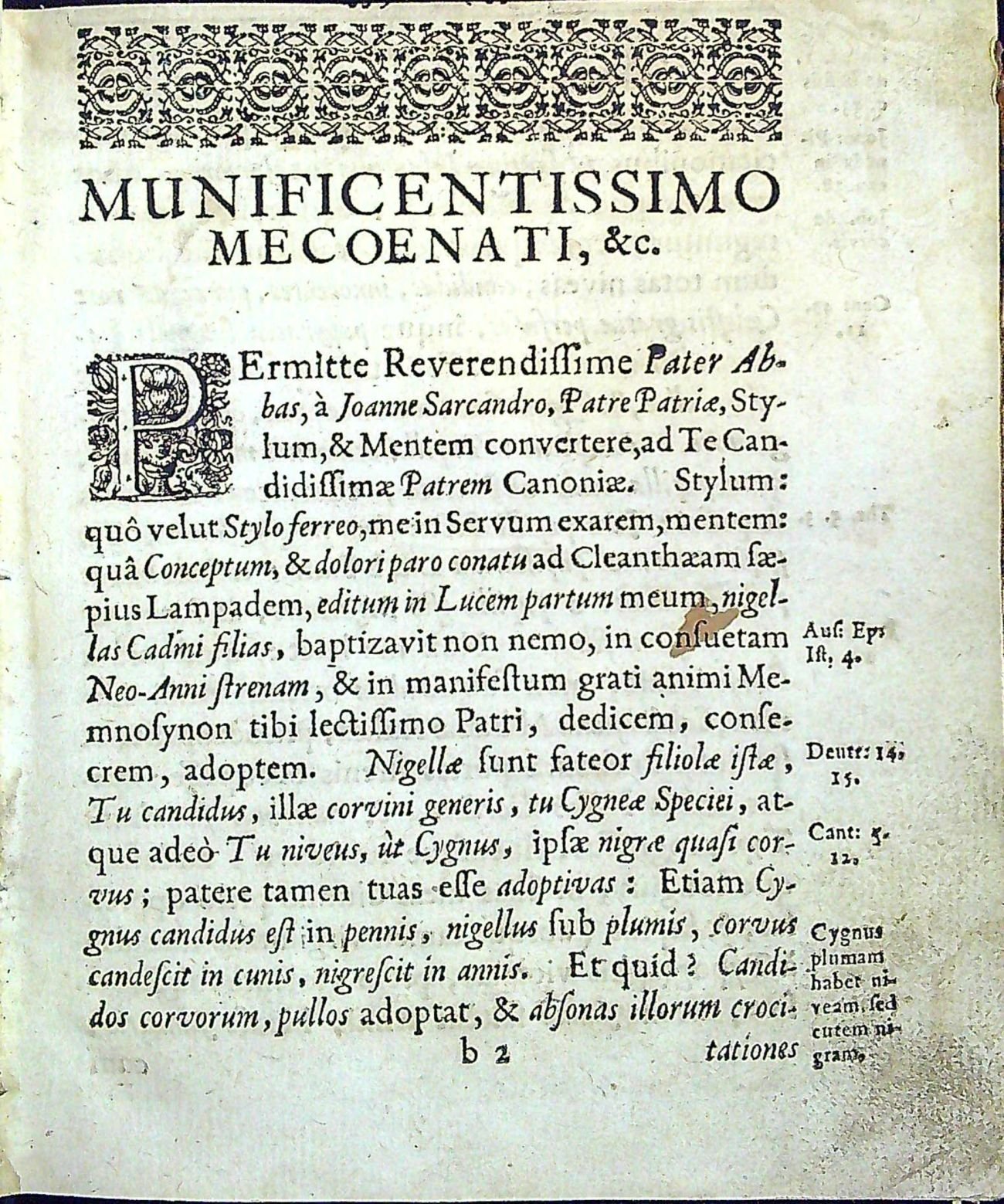 Cantator CygnVs , fVnerIs (a) Ipse sVI, MortIs beatae traDItor. hLas DVChownI LabVtě/ K gIstéMV SpasenI prospěssnI, a na Starost spogenI Spěw: oD SwátkV DUCha Swatého/ OtCe nasseho/ až k ADVentV: .......