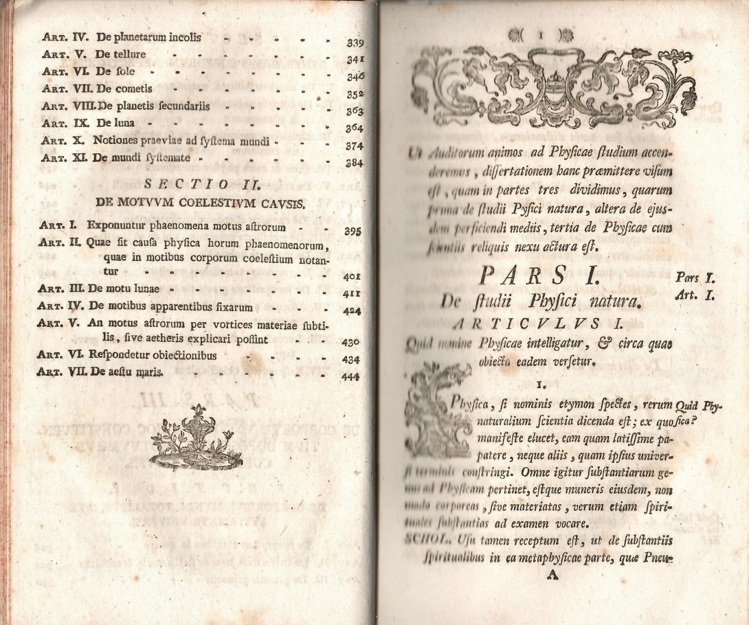 Vstupní vlys z rostlinného ornamentu, viněty, tučně tištěné versálky ve výši 2 řádků.<br>Dobová kartonová vazba s deskami potaženými škrobovým papírem, kožený hřbet a nárožnice, ve hřbetu 4 vazy, červeně barvené ořízky. Desky vazby místy odřené, kůže při horním okraji hřbetu natržená, naražené rohy. Na tit. listu dřevořezová viněta proděravělá, papír místy zahnědlý s drobnými hnědými skvrnkami.<br>Leopold Biwald (26.2. 1731 Vídeň - 8.9. 1805 Štýrský Hradec) profesor logiky a fysiky na universitě ve Štýrském Hradci. První vydání nabízené knihy vyšlo roku 1766. Kniha se zabývá především teoretickou mechanikou a astronomií a popisem pohybu kosmických těles vesmírem a určováním jejich drah.