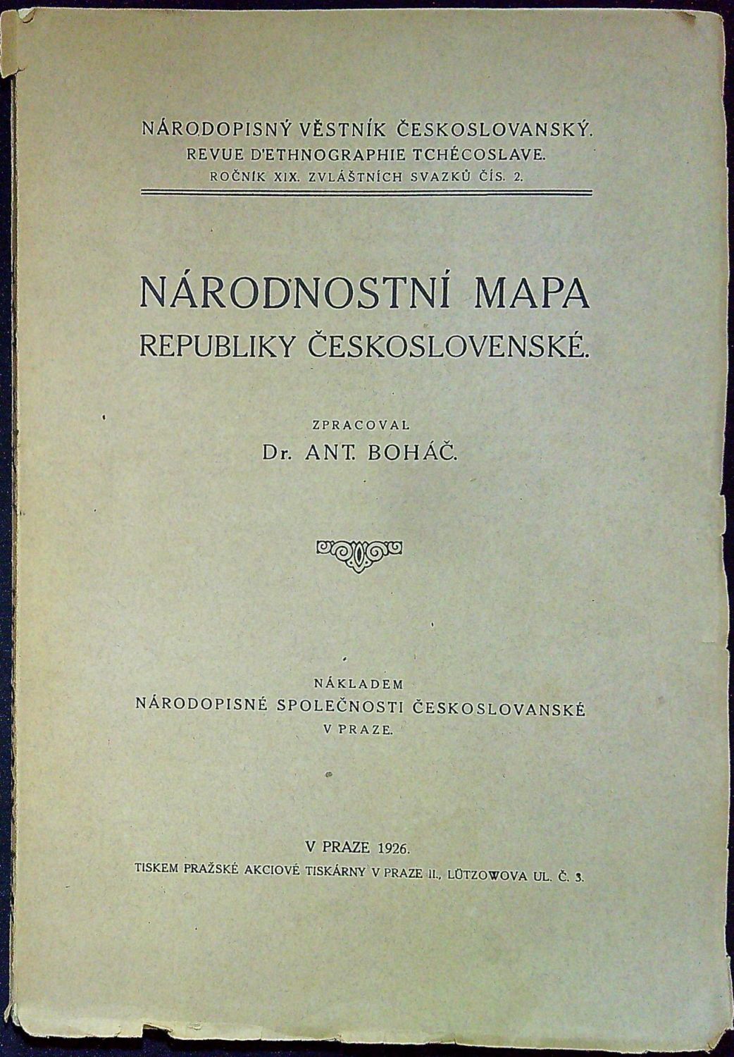 Národnostní mapa Republiky československé. Podrobný popis národnostních hranic, ostrovů a menšin.
