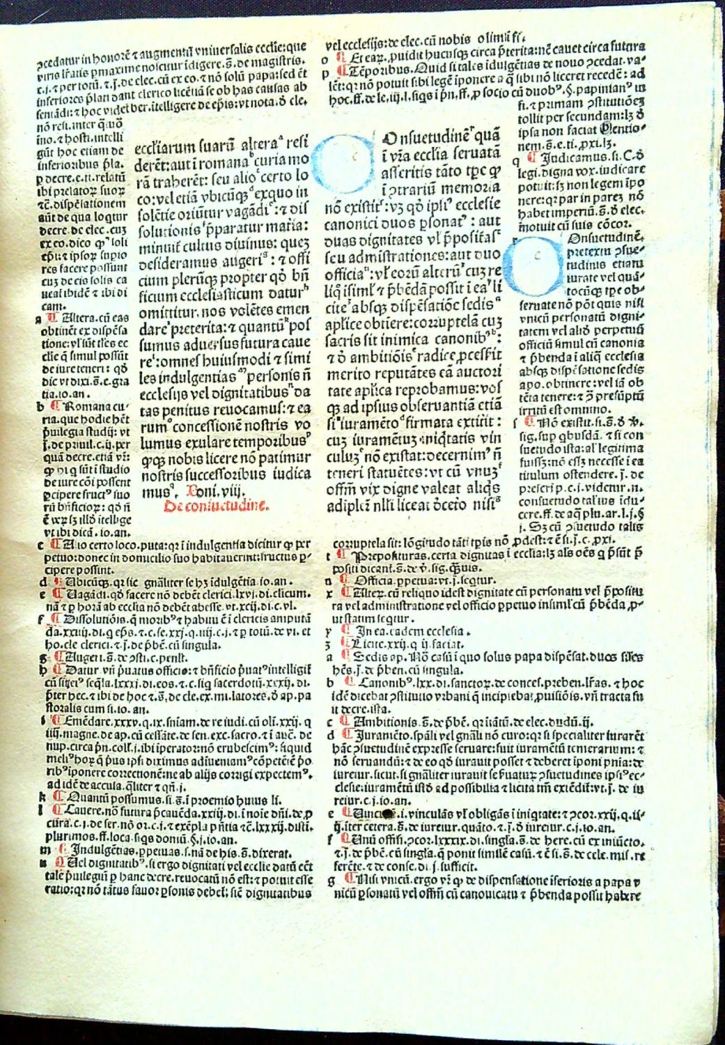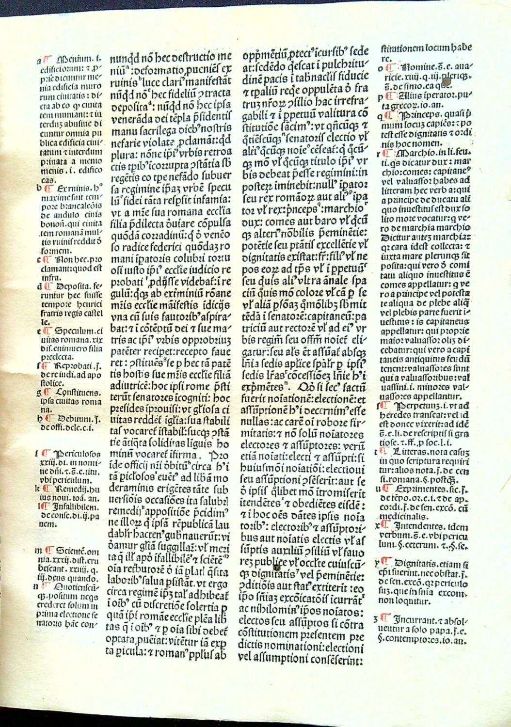 ISTC ib00995000 - eviduje 55 ex., v ČR žádný; HC 3604; GW 4871; Goff B-995<br>Název i incipitu na foliu A5a "Jncipit sext[us] liber d[e] cretaliu[m] BONIFACIUS E[pisco]pus". V explicitu na foliu S10a "Liber sextus decretalium vna cum apparatu d[omi]ni Joa[n]nis andree accuratissime castigatus feliciter explicit: Uenetijs imp[re]sus opera atq[ue] impe[n]sa Bartholomei de alexa[n]dria Andree de asula Maphei[que] de salodio socio[rum] anno salutis christiane M.cccclxxxij. sexto cale[n]das octobris. Na foliu A2 až A4 glosa Johanna Andreae "Super arboribus consanquinitatis et affinitatis". Tištěno rotundou ve dvou sloupcích, 66 řádků, úvodní glosa 64 řádků a v lehce odlišné typografii, signatury, modré kaligrafické iniciály ve výši 4-5 řádků, na foliu A5a malovaná (červeno-modrá) ve výši 18 řádků, dvoubarevný tisk (červeno-černý) s červeně tištěnými rubrikami, iniciálami ve výši 2 řádků, nadpisy a kolofonem. Kopletní exemplář. <br> Vazba (235 x 175 mm) ze starších dřevěných desek, kožený hřbet z konce 17., či počátku 18. století, ve hřbetu 3 vazy, podél hřbetu v kůži tlačený ornament. Na přední i zadní desce novější kovové úchyty, dvě kožené přezky a jedna (ze dvou) kovová spona. Stříkané ořízky. Na dřevěných deskách dírky od červotoče. V textu tu a tam malinké dírky od červotoče se ztrátou jednotlivých písmen. Některé modré iniciály jsou vybledlé, či zčásti setřené. Na předním přídeští stará razítka s čísly a nalepené dva výstřižky z katalogu s údaji o knize. Knižní blok mírně rozvolněný.<br>Vzácné vydání díla, které vyšlo poprvé roku 1465 u Fusta a Schöffera v Mohuči. Liber sextus byl sepsán v letech 1296-1298 a tvořil třetí část díla Corpus Juris Canonici.<br>Andreas Torresanus (1451 - 1529 Benátky), benátský tiskař, v letech 1508-1515 spolupracoval se svým zetěm Aldem Manutiem.