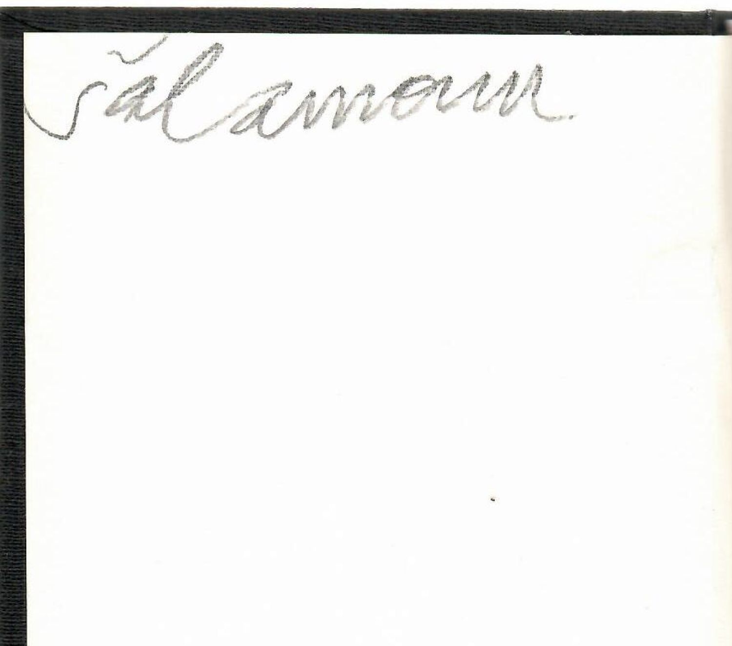 Č. ex. 56/200. Desky potaženy černým plátnem. Ve hřbetu tlačený a zlacený věcný název. Příloha obsahuje 23 vlepených ukázek barveného papíru, z toho dvě ukázky v tomto exempláři chybí. Na patitulu a předním přídeští signováno Jiřím Šalamounem.