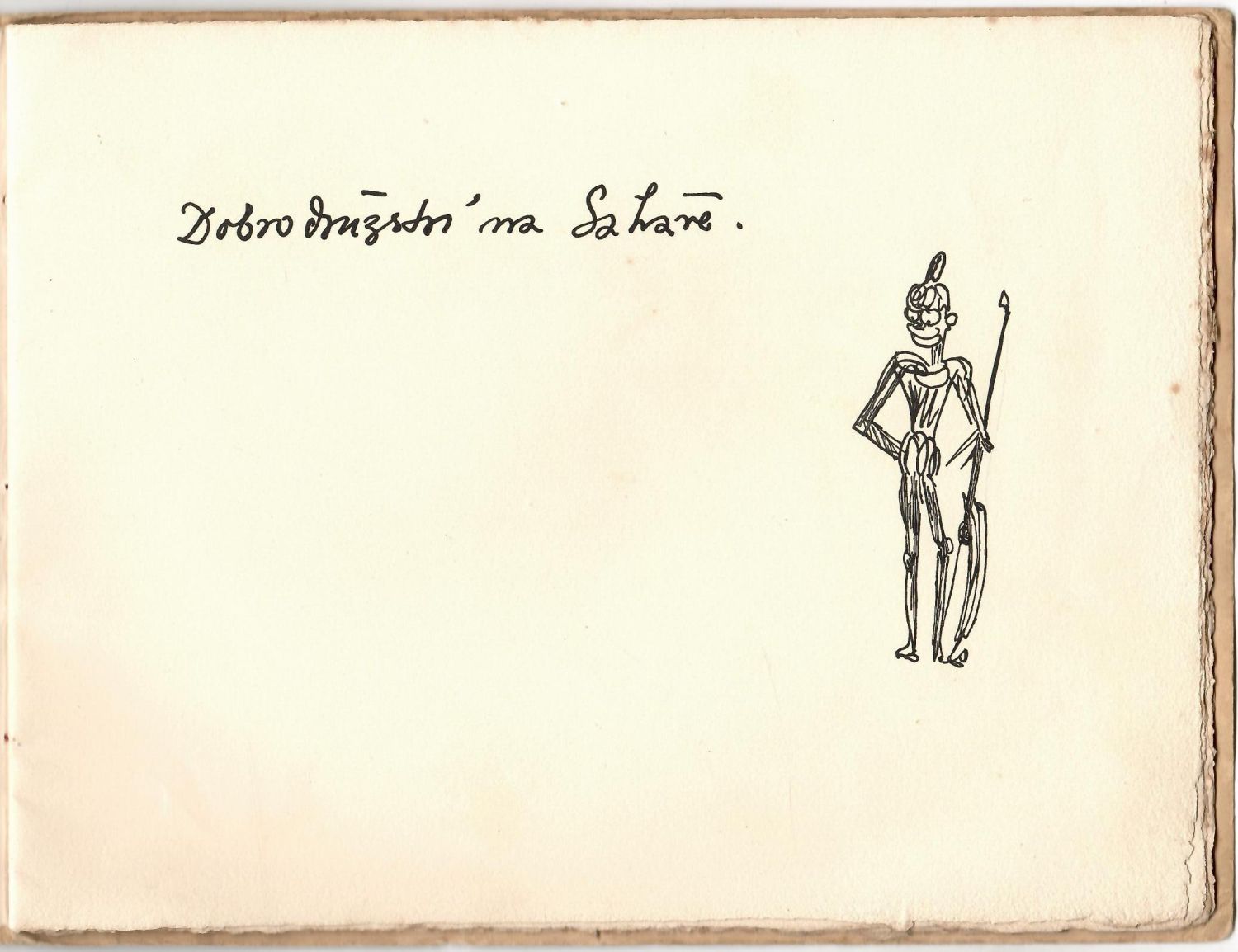 Ex. č. 3 ze 70 vydaných a tištěných na ruční papír s filigránem, upravil Rudof Hála. Soubor kreseb (na obálce, na tit. listu a pět celostr.) vydal na památku V.H.B. pro sebe a své přátele na Král. Vinohradech Kamill Resler, v tiráži červeně napsané číslo 3 a exemplář losem připadl paní Marii Brunnerové (červeně dopsáno, Marie - byla manželkou V.H.B.). Původní obálka z tužšího papíru (200 x 263 mm) s ilustrací na přední i zadní straně straně, místy zašpiněná, na její zadní straně a na patitulu hnědé skvrnky od kyselosti papíru.