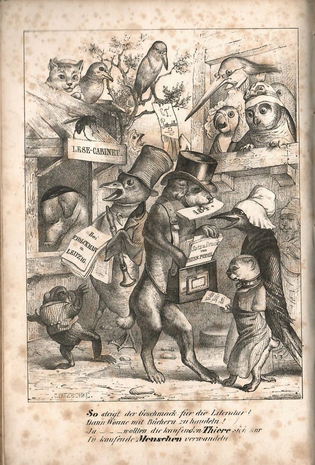 | Ilustrace: | Front. + 80 litograf. tabulí, které dle Grandvilla zhotovil Carl Friedrich Patzschke. Na konci 1 list oboustranně ilustr. letáku nakladatelství. |