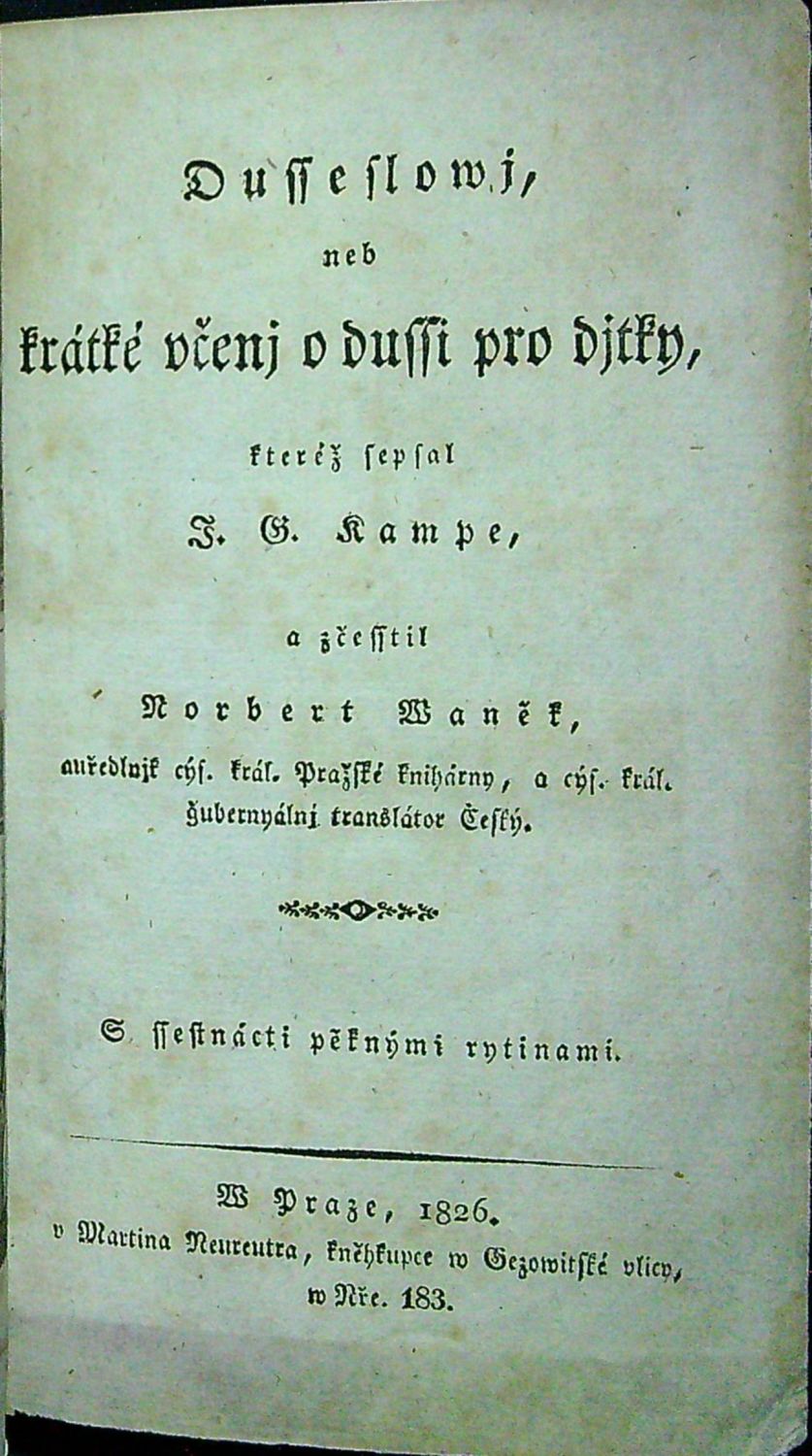 Dusseslowj, neb krátké učenj o dussi pro djtky, kteréž sepsal ... a zčesstil Norbert Waněk ...