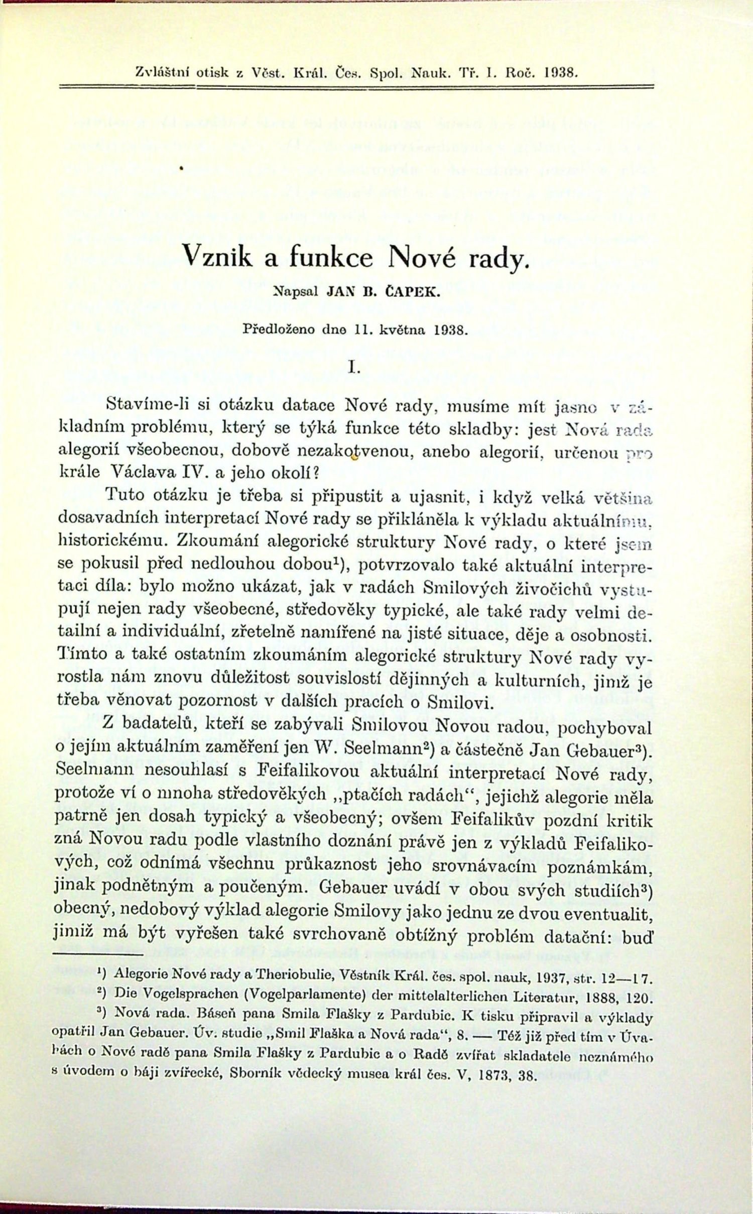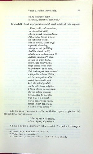 Individuální polokožená vazba Otto Blažka, při horním okraji hřbetu tlačený a zlacený název, zlacená svrchní ořízka, na zadním přídeští suché razítko Blažkovo. Původní pap. obálka vevázána. Na tit. listu rkp. dedikace černým perem "Panu ministr. radovi dru J. Palivcovi v upřímné úctě J. B. Čapek".