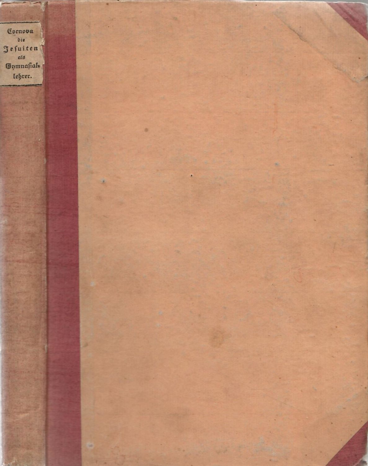 Tištěno švabachem, latinský text antikvou, tištěné poznámky pod čarou. Od strany 255 chybná paginace až do konce (místo str. 256-260 číslováno 156-159, str. 159 2x). - Kartonová vazba ze světlých desek, ve hřbetu a v nárožnicích světle červený papír, při horním okraji hřbetu světlý pap. štítek s názvem, knižní blok zčásti neoříznutý.<br>Ignáz Cornova (1740-1822), syn italského kupce, člen jezuitského řádu, významný historik. V letech 1784-1795 řádným profesorem na pražské universitě, od roku 1776 přední člen pražské zednářské lóže "U tří korunovaných sloupů". Zakládající člen Královské učené české společnosti.