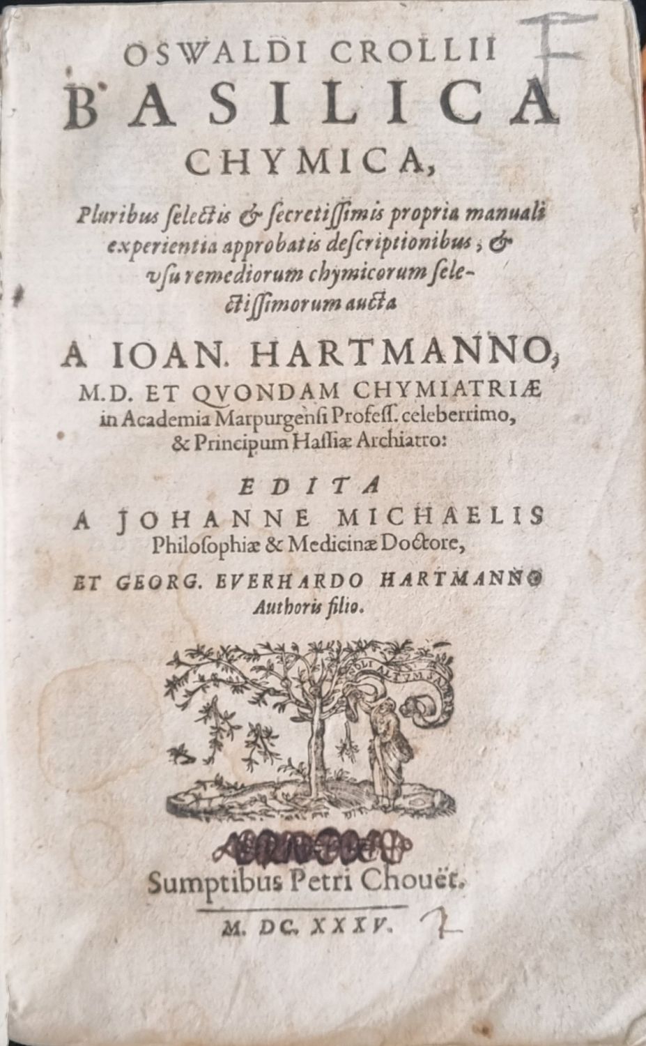 BASILICA CHEMICA, Pluribus selectis et secretissimis propria manuali experientia approbatis descriptionibus, et usu remediorum chymicorum selectissimorum aucta A IOAN. HARTMANNO, ..... EDITA A JOHANNE MICHAELIS ... et GEORG. EVERHARDO HARTMANNO.