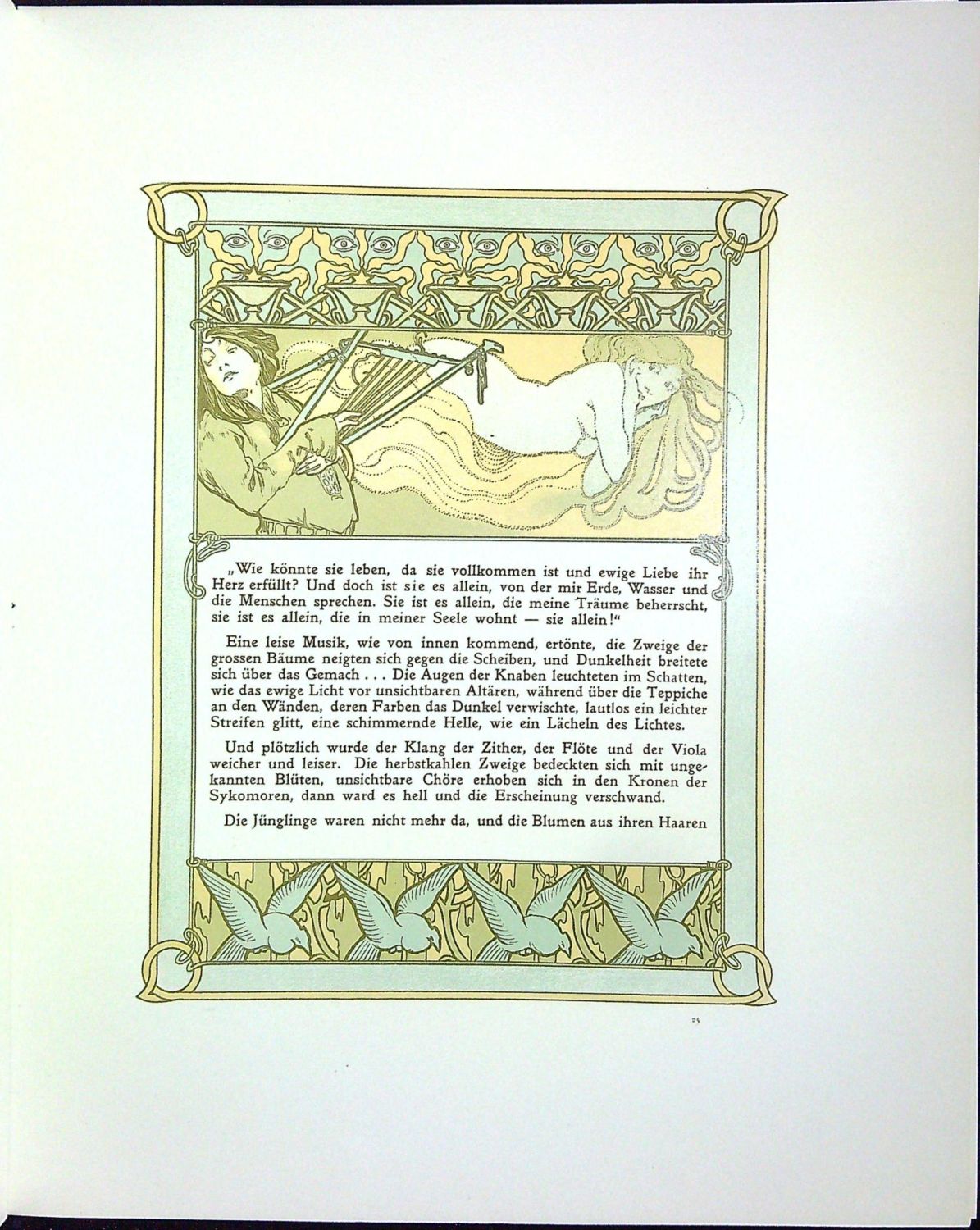 Ex. č. 381 z 800 vydaných výtisků na velínu. 134 původních litografií A. Muchy, původní litografovaná obálka, na tit. listech jednotlivých oddílů knihy Muchovy viněty, před patitulem titul v reliefu podle Muchy modelovaný Alexandrem Charpentierem, na předposledním listu suché razítko Kočího nakladatelství.<br>Původní pap. obálka, papír u horního okraje hřbetu v délce cca 3 cm natržený, , při spodním okraji hřbetu mírně roztřepený. Původní plátěné ochranné pouzdro s chlopněmi (imitace kůže) ve hřbetu mírně odřené. První vydání vyšlo ve francouzském jazyce v Paříži roku 1897, toto druhé vydání v Praze v německé a české jazykové versi.