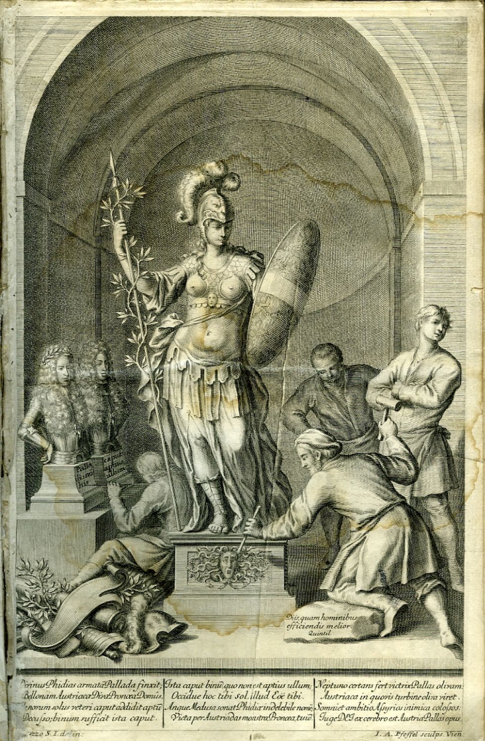 | Ilustrace: | Ve front. celostr. mědirytina od I. A. Pfeffela s vyobrazením sochaře Fiedia, který dokončuje své dílo, sochu Athény. |