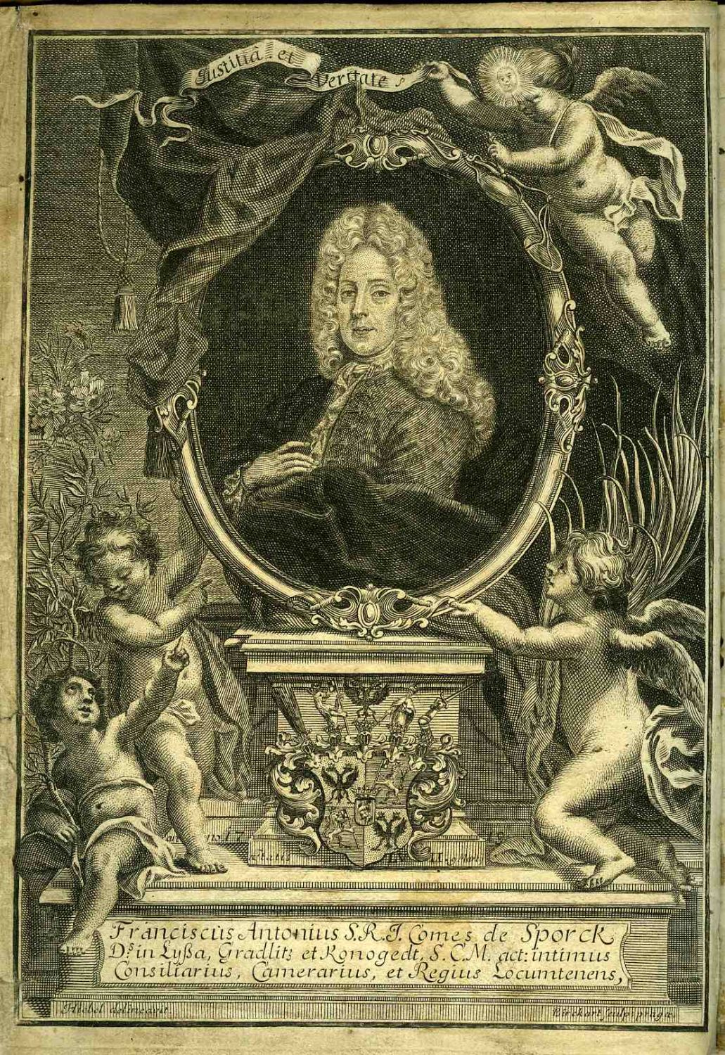 | Ilustrace: | Ve front. mědirytinový portrét Františka Antonína hraběte Šporka v oválném rámu na podstavci s erbem, obklopený čtyřmi putti, rytý Birckartem podle Hiebela, za textem 1. a 2. dílu dřevořez. erby Šporků-Sweertsů pod knížecí korunou, za textem 3. dílu erb šporkovský, v textu ozdobné viněty, vlysy a iniciály. |