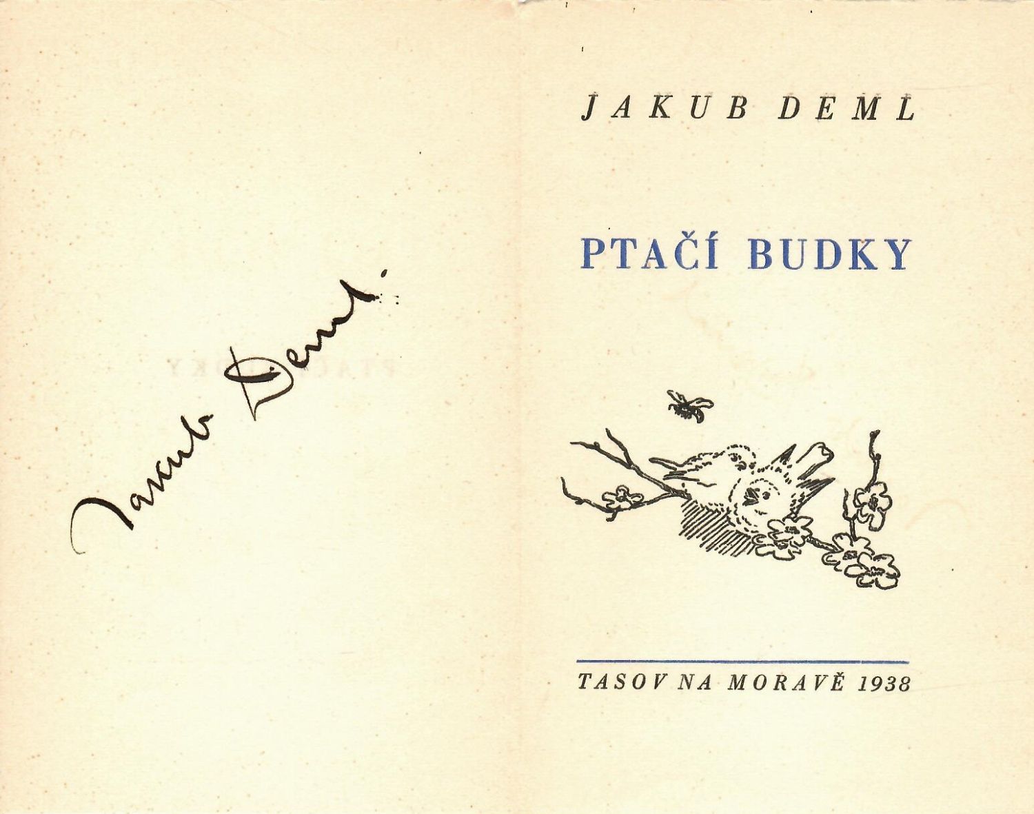 Vytiskl Josef Peksa v Jaroměřicích n. Rokytnou, dvoubarevně tištěný tit. list. - Proti titulu podpis autora.