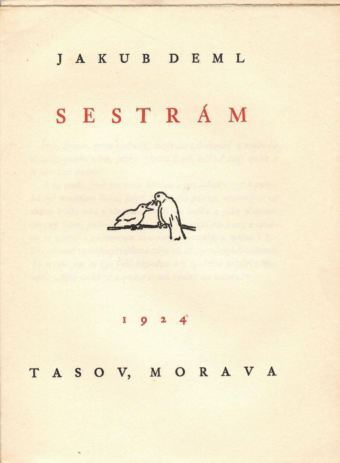 Dvoubarevně tištěný titulní list. Původní papírová obálka s Bílkovou ilustrací na přední straně. Při horním okraji hřbetu chybí kousek pap. pokryvu, při spodním okraji přední strany obálky v délce cca 5 cm podél hřbetu natržený papír.