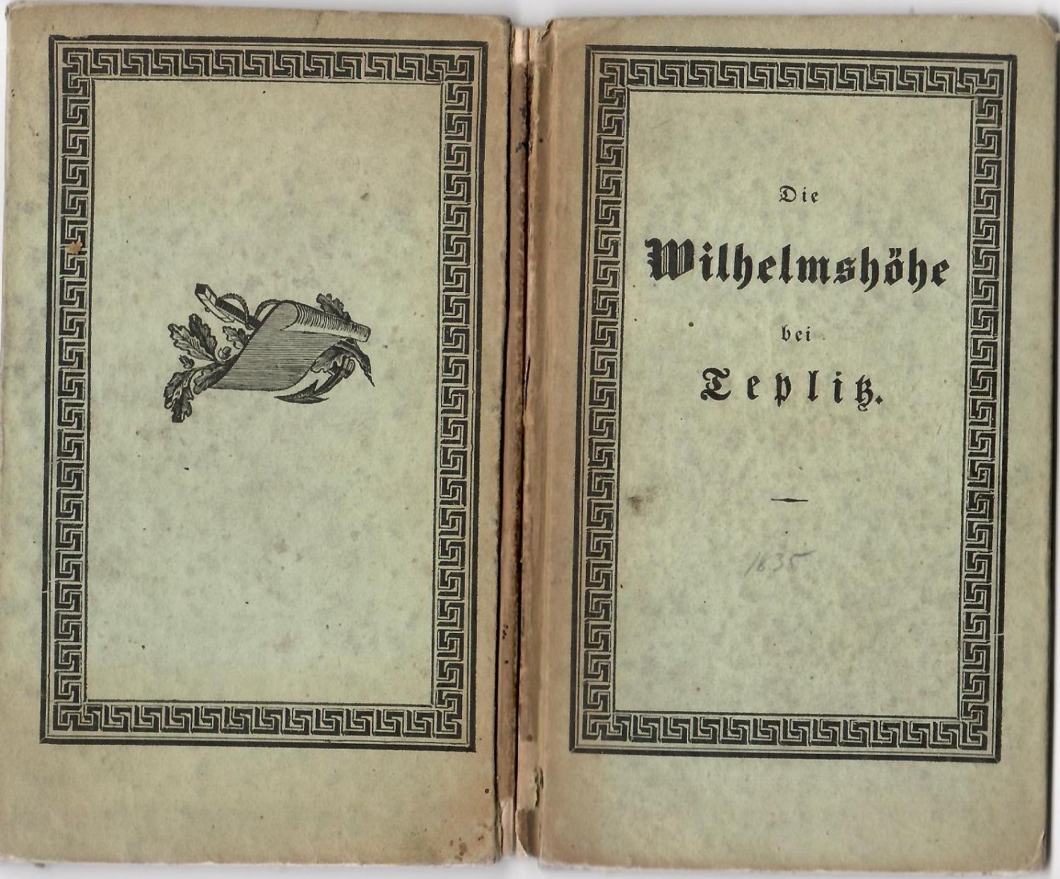 Gotika, signatury, tištěné poznámky pod čarou, arabská paginace stran uprostřed horního okraje nad mizící linkou. Ve frontispisu rozkládací ocelorytina s pohledem na Vilémovu výšinu a budovou mlýna na jejím úpatí, rytinu vyryl C. Tschuppik a vytiskl C. W. Medau.<br>Původní kartonová vazba, na přední desce v ornamentálním rámu název, na zadní viněta. Ve hřbetu chybí pap. pokryv, na tit. listu perem jméno jednoho z prvních vlastníků knížky.<br>Stručný popis v minulosti oblíbeného turistického místa "Vilémovy výšiny" nad městem Krupka v Krušných Horách a jejího blízkého okolí. Na jejím vrcholu se nacházel osmiboký altán a restaurace. Místo se původně nazývalo "Mlýnský vrch", protože pod úpatím u potoka stávaly tři mlýny. Po návštěvě pruského krále Fridricha Wilhelma III. bylo přejmenováno.<br>Ewald Christian Victorin Dietrich (19.7. 1785 Grünhayn - 1.1. 1832 Leipzig), byl německý spisovatel a lékař. Několikrát pobýval jako lázeňský host v Karlových Varech a Teplicích, kde během svého pobytu napsal nabízeného stručného průvodce, který tiskem vyšel až po jeho smrti. Souborný katalog knih ČR eviduje ve státních sbírkách 3 exempláře.