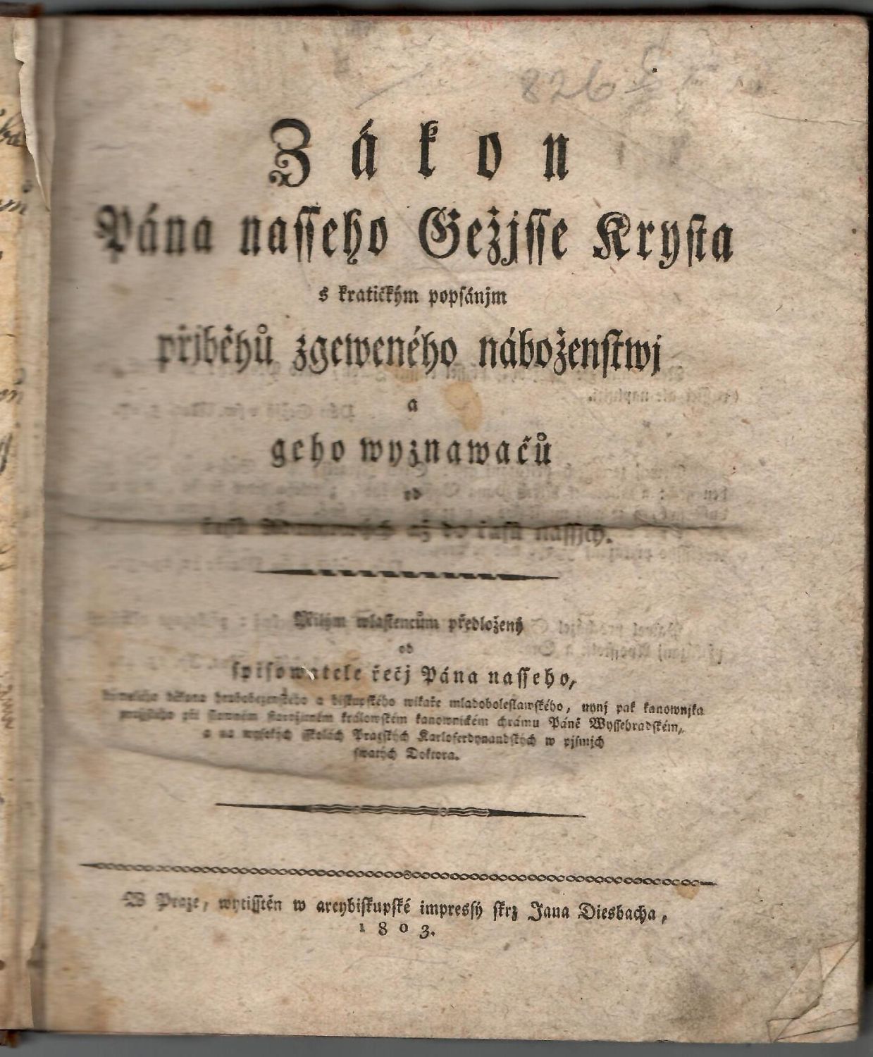 Zákon Pána nasseho Gežjsse Krysta s kratičkým popsánjm přjběhů zgeweného náboženstwj a geho wyznawačů od časů Adamowých až do časů nassjich.