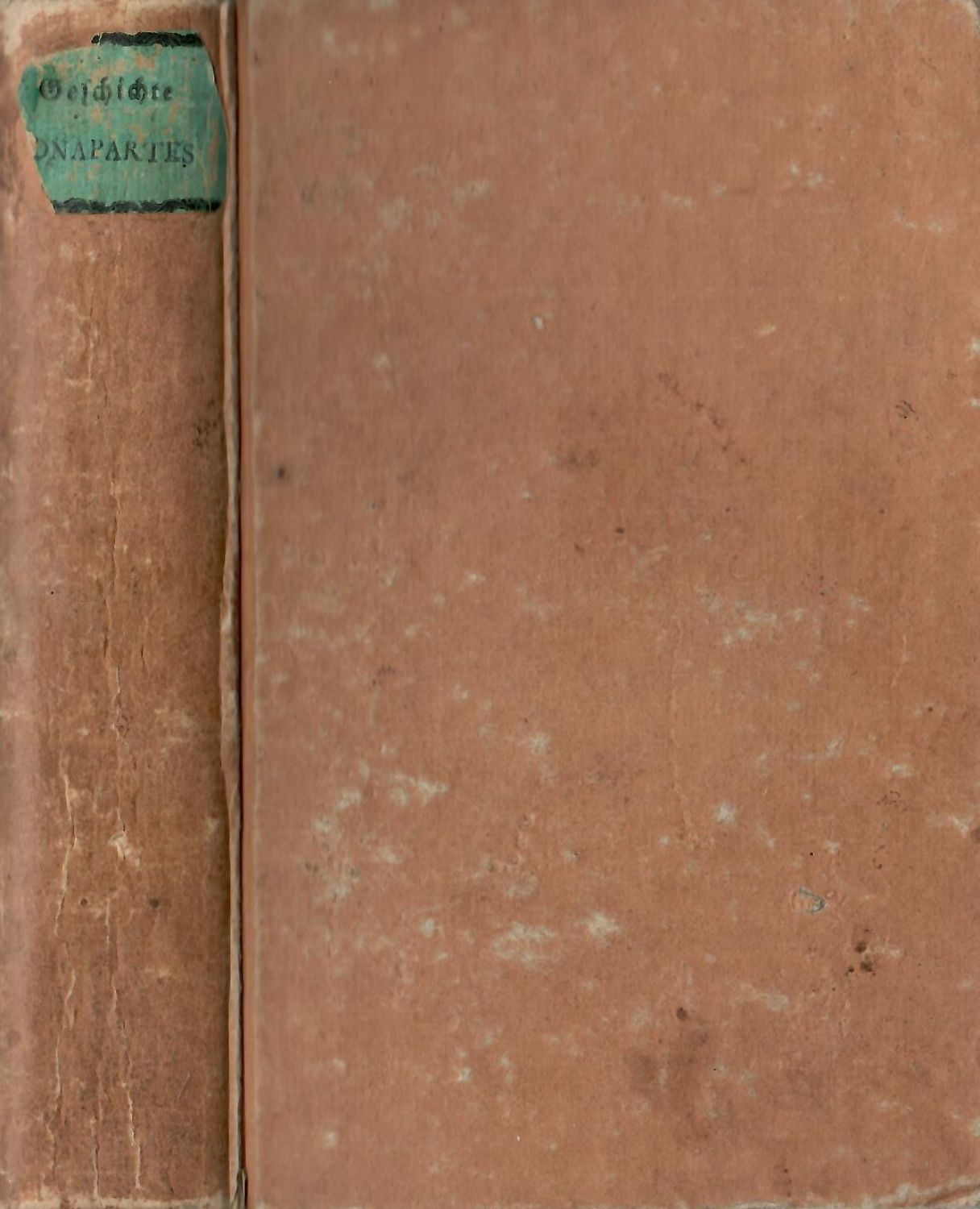 | Ilustrace: | Ve front. mezzotinta s portrétem Napoleona, kterou vyryl Moreau dle kresby J. L. Davida, za třetím dílem rozkládací ocelorytina (mapa Egypta - vojenských tažení Napoleona) a rozkládací, ručně kolorovaná mapa Horní Itálie. (Jean Michel Moreau ml., 1741-1814, pařížský malíř, kreslíř a rytec, jeden z nejplodnějších francouzských ilustrátorů pozdního rokoka). |