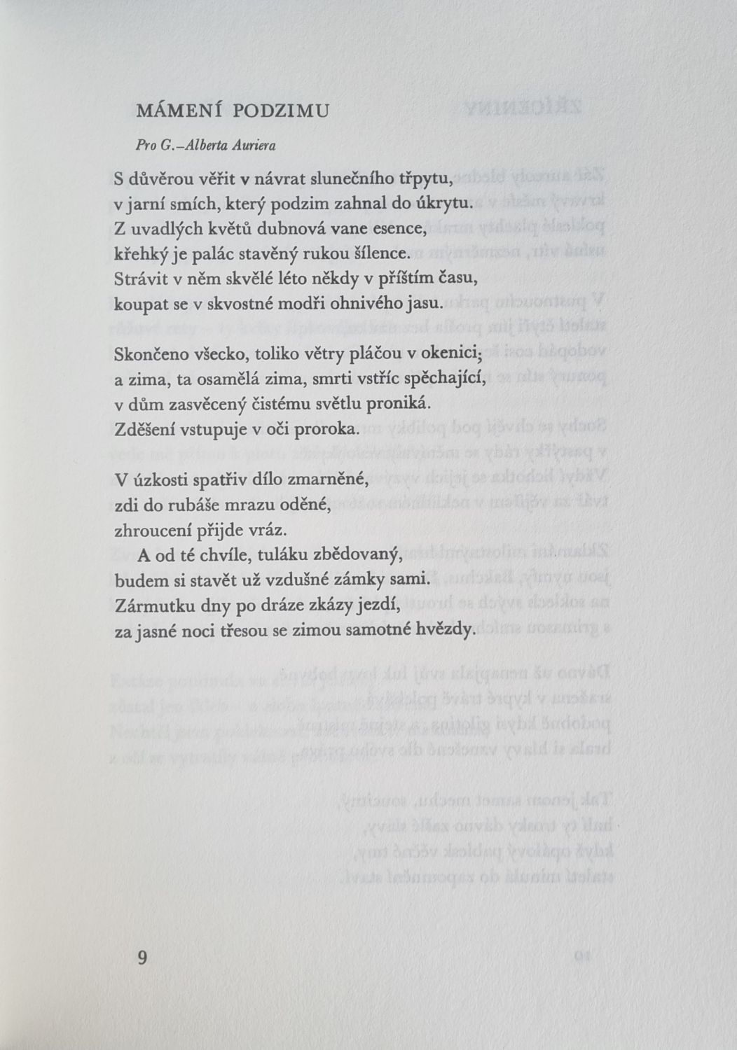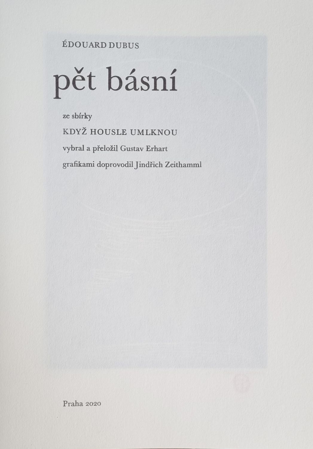 Ex. č. 39 z 50 vydaných, graficky upravil a ruční sazbu z písma Baskerville zhotovil Jaromír Šťoural, který ve své dílně Lis v lomu vytiskl grafické listy, text byl vytištěn v dílnách VŠUP (Vladimír Janďourek). Tištěno na papír Excudit VI. Básně vybral a přeložil Gustav Erhart, který napsal též závěrečnou poznámku. Česko-francouzský text.