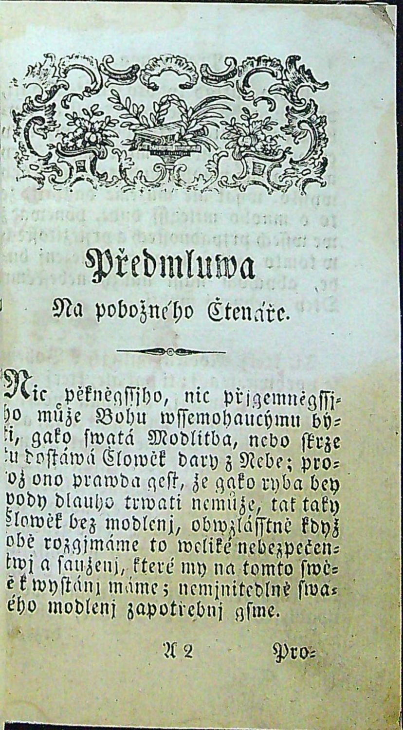SKC neeviduje.<br>Tištěno švabachem, latinská slova antikvou, červeno-černě tištěný tit. list, živá záhlaví, tučně tištěné plné iniciály ve výši 2 řádků, místy tučně tištěno, různé velikosti písma, vstupní pásový vlys, na konci předmluvy viněta. Na předním přídeští ex libris sběratele Jaroslava Jiráska z Trutnova.