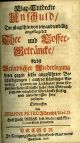+ přívazek: Albrecht, Johann Peter: "Klar=Entdeckte Unschuld, Der jüngsthin von jemand unbillig angeklageter Thee und Coffee-Geträncke, Nebst Gründlicher Wiederlegung derer gegen selbe angeführter Beschuldigungen, auch verständlicher Anweisung, warum ein Liebhaber seiner Gesundheit hohe Ursache habe, den Gebrauch sothaner nützlicher Geträncke fleißig und unverdrossen fort zusetzen". Bremen, Philipp Gottfried Saurmann, 1696. [VIII], 215, [I] str. + 2 nepotištěné listy. Červeno-černě tištěný titulní list, živá záhlaví, vstupní vlys z ornamentů a iniciála s rostlinnými úponky ve výši 4 řádků. - Místy drobné hnědé skvrnky, na str. 165-168 a 181-184 hnědé skvrny způsobené pravděpodobně popelem z cigarety. - První a snad jediné vydání práce o neškodlivosti pití kávy a čaje z pera německého lékaře v Hildesheimu, Petera Johanna Albrechta (1647-1724). (VD 17 39:141129P)