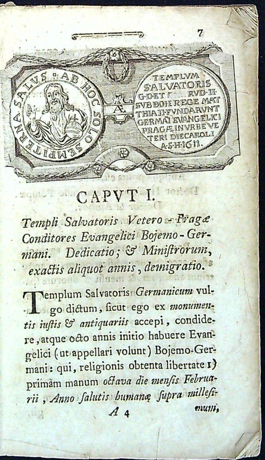 Knihopis 2147; Zíbrt IV/2326;- přívazek BCBT29013; Pumprla VI/3100. <br/> Chybí frontispis a dvě mědirytinové přílohy. Na str. 7 mědirytina v ozdobném rámci s girlandami (pamětní medaile z r. 1611). Na titulním listu a rubu obálky provenienční záznamy inkoustem, u tit. listu utržen pravý horní růžek. <br> V. F. Durych (1735-1802), člen řádu paulánů, působil v Tachově, Mnichově a Praze, tři roky byl provinciálním vikářem. Filolog, slavista a orientalista, zakladatel odborného slavistického studia v Čechách. Zabýval se především církevně-slovanským jazykem a literaturou a staročeskými překlady bible. <br/> přívazek: Monumenta probationum desumpta ex tabulario Pragensi FF. Minimorum. [bez místa (Praha), nakladatele, roku (1771)]. 58 (recte 56) strna straně 49 (nečíslované) mezititul "POSITIONES EX VNIVERSA THEOLOGIA QVAS PVBLICE PROPVGNENDAS SVSCEPIT V. P. ROCHVS SCHADEK ....". Uprostřed horního okraje stran mizící ozdobná tyč, viněty.