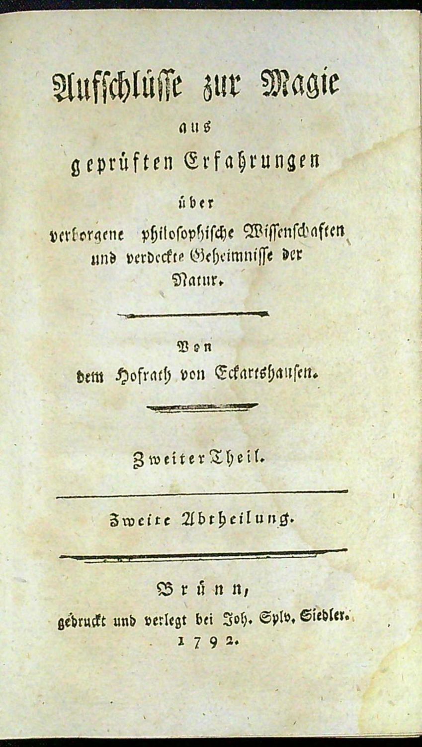 Aufschlüsse zur Magie aus geprüften Erfahrungen über verborgene philosophische Wissenschften und verdeckte Geheimnisse der Natur. Zweiter Band, Zweite Abtheilung.