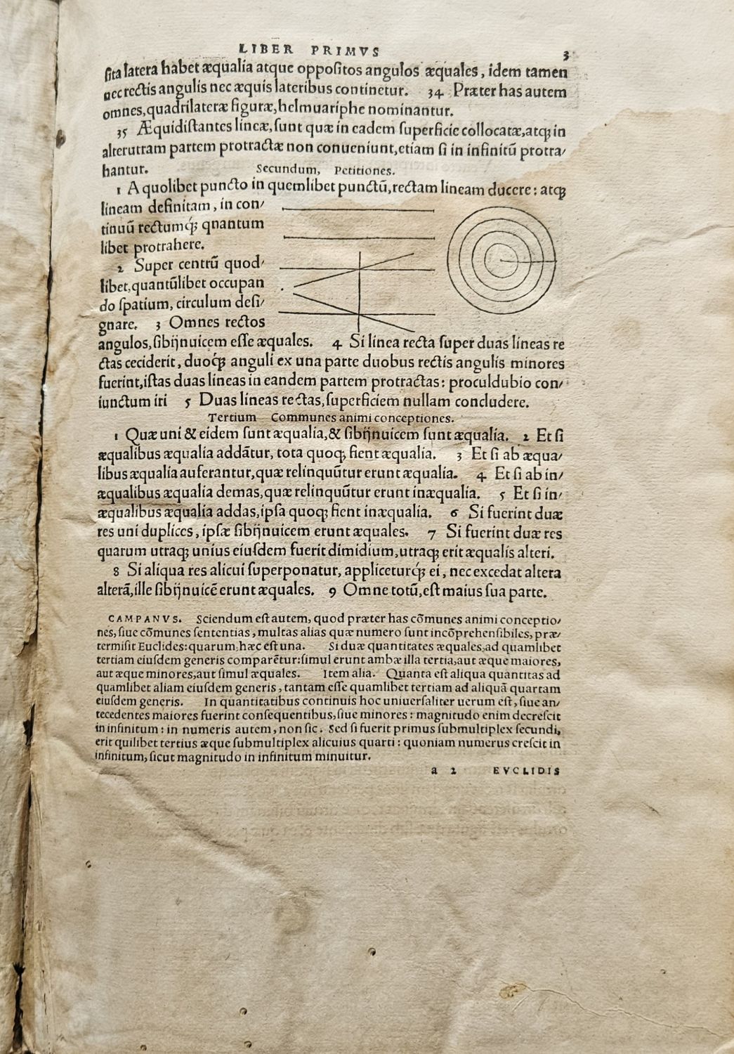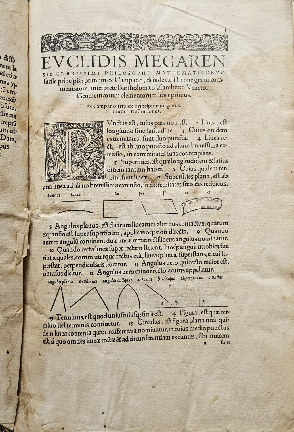 EVCLIDIS MEGARENSIS MATHEMATICI CLARISSIMI ELEMENtorum Geometricorum. Lib. XV. Cum expositione THEONIS in priores XIII á Bartholomeo Veneto latinate donata, CAMPANI in omnes, et HYPSICLIS Alexandrini in duos postremos. His adiecta sunt Phaenomena, Catoptrica et Optica, deinde Protheoria Marini et Data, Postremum uero, Opusculum de Leui et Ponderoso, hactenus non uisum, eiusdent.