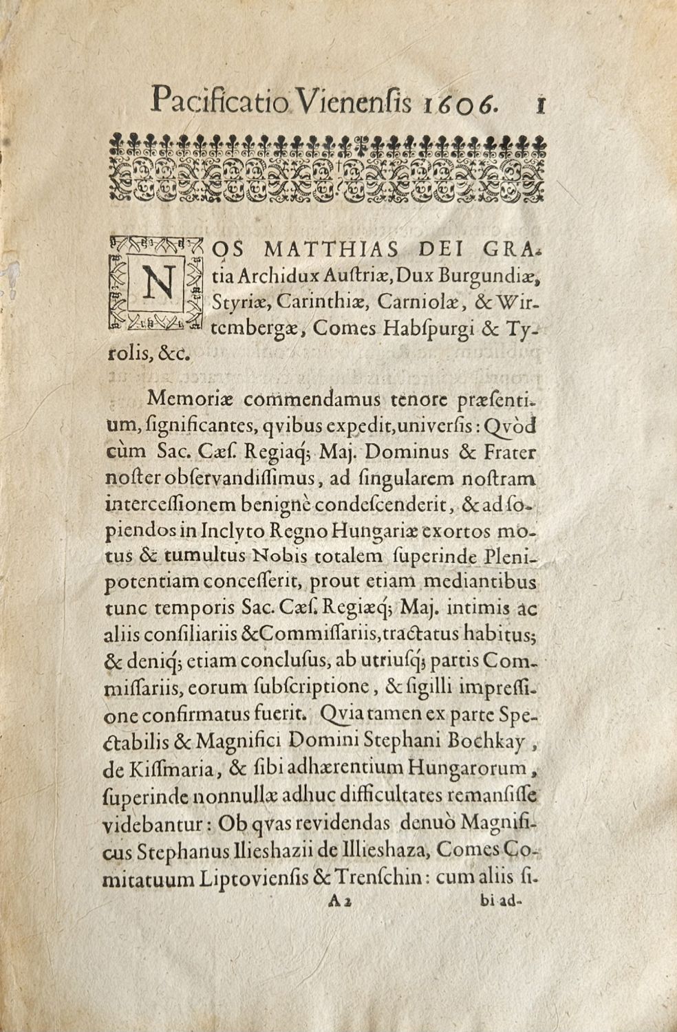 EXEMPLAR RECONCILIATIONIS CUM HVNGARIS FACTAE 23 Junii, ANNO 1606. nec-non Conclitiones Pacis Turcicae.