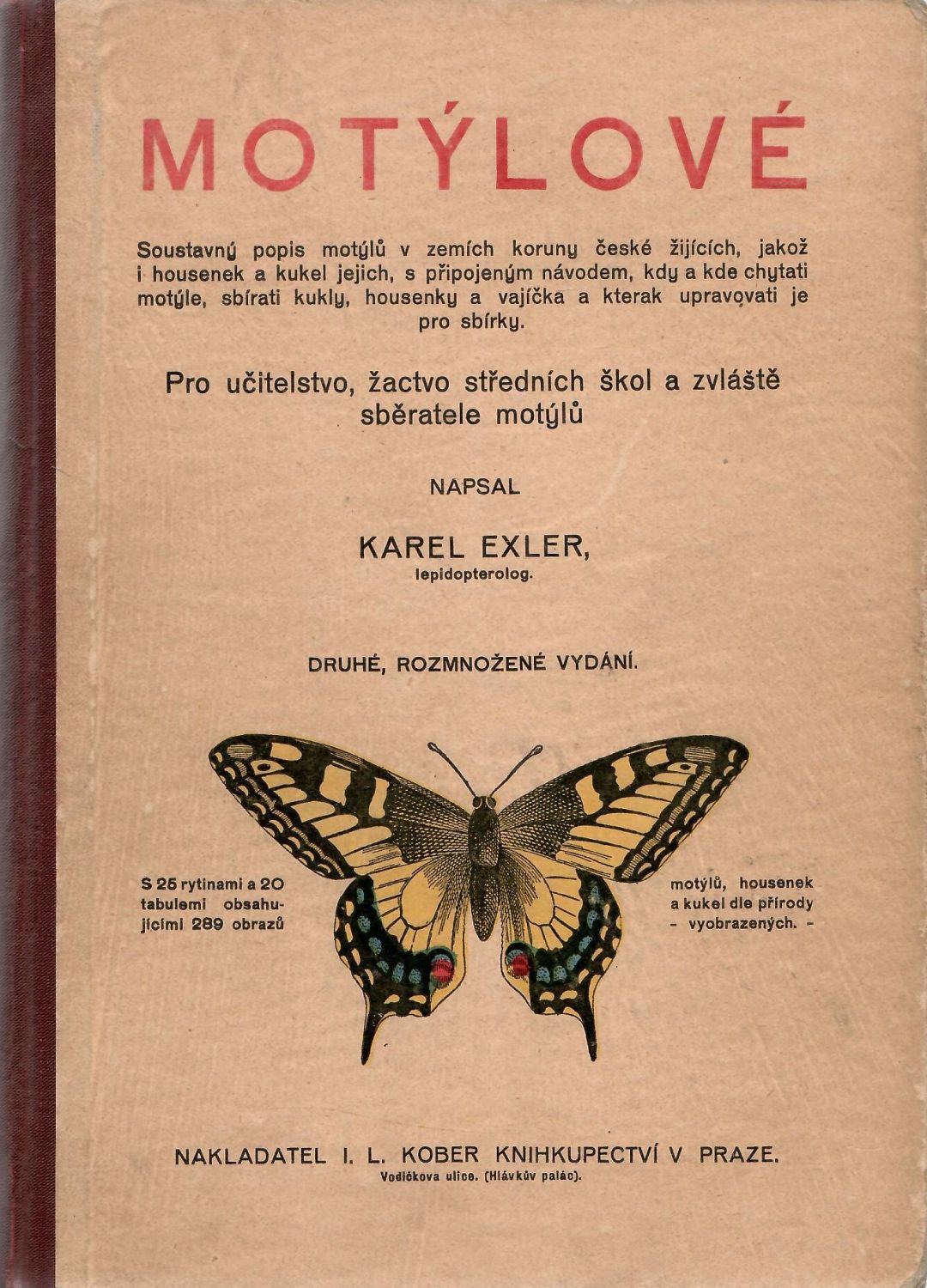 Motýlové. Soustavný popis motýlů v zemích koruny české žijících, jakož i housenek a kukel jejich, s připojeným návodem, kdy a kde chytati motýle, sbírati kukly, housenky a vajíčka a kterak upravovati je pro sbírky.