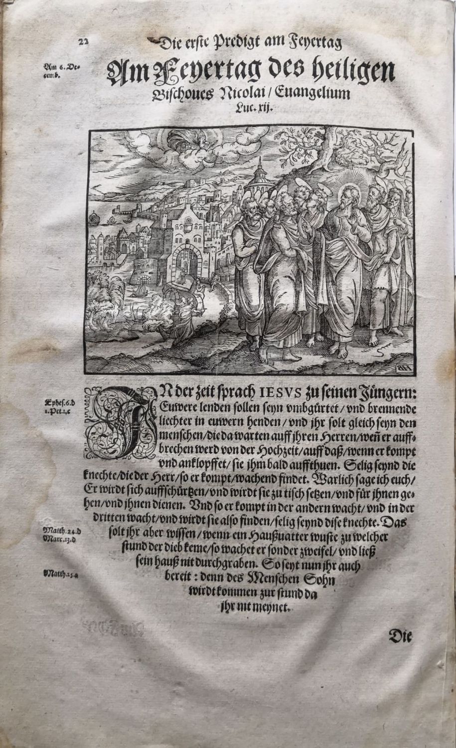 POSTILLA CATHOLICA Euangeliorum de Sanctis totius Anni. Das ist: Catholische Außlegung aller Fest und feyertäglichen Euangelien durch der gantze Jar. Darinnen uber jede Euangelien zwo Predigen begriffen. Deren allwegen die erste, das Euangelium in dreen Stücken abgehandlet: In der andern aber, wirdt ein fürnemer Punct jeder Euangelien, je den Glauben, je das Leben betreffend, in zweyen Theilen außgefürt. Sampt neuen Passionpredigen. Geprediget, nun aber GOTT dem Allmechtigen zu Lob und ehren, Röm. Keys. May. zu allergnedigstem Wolgefallen, und allen den jenigen so ernstlich Lust zur Wahrheit haben zu gütem, in offentlichen Druck verfertiget . Durch Jakobum Feuchthium, Episcopum Naturensem, Bambergischen Weyhebischouen, Canonie. daselbsten bey S. Stephan, der H. Schrifft D. etc. Getheilt in Drey Theil. Der Erste Theil des andern TOMI begreisst alle Euangelien vom Apostel Andrea an, biß auff den Pfingstmontag.