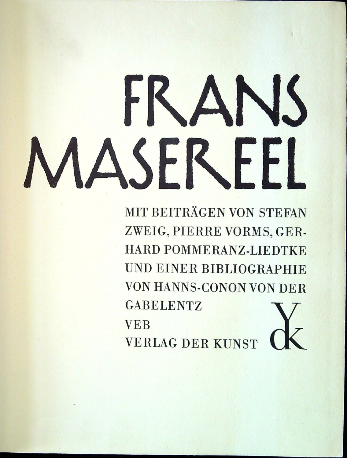 Frans Masereel. Mit Beiträgen von Stefan Zweig, Pierre Vorms, Gerhard Pommeranz-Liedtke und einer Bibliographie von Hanns-Conon von der Gabelentz.