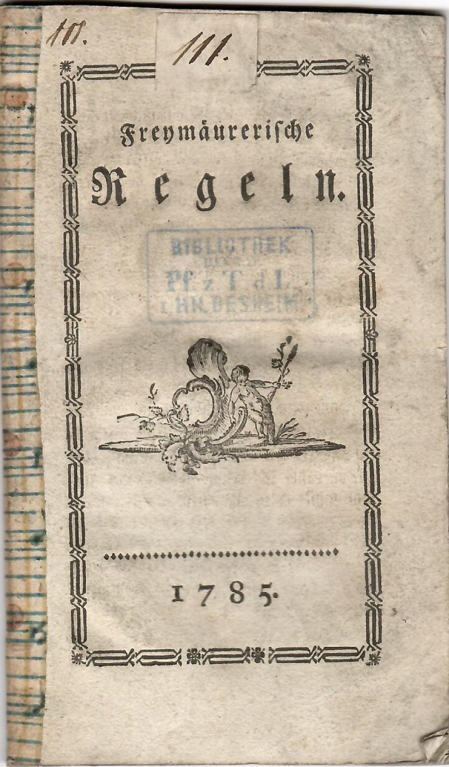 Tištěno švabachem, uprostřed horního okraje dvojitá mizící linka, tit. list olemovaný rámečkem z prolamujících se ornamentů, na tit. listu a v závěru drobné viněty, v záhlaví folia A2 ozdobná tyč, tučně tištěné versálky. <br>Původní brožurka ve hřbetu přelepená páskou z dobového škrobového papíru, na tit. listu staré razítko zednářské lóže v Hildesheimu a uprostřed horního okraje nalepen malý pap. štítek s evidenčním číslem.