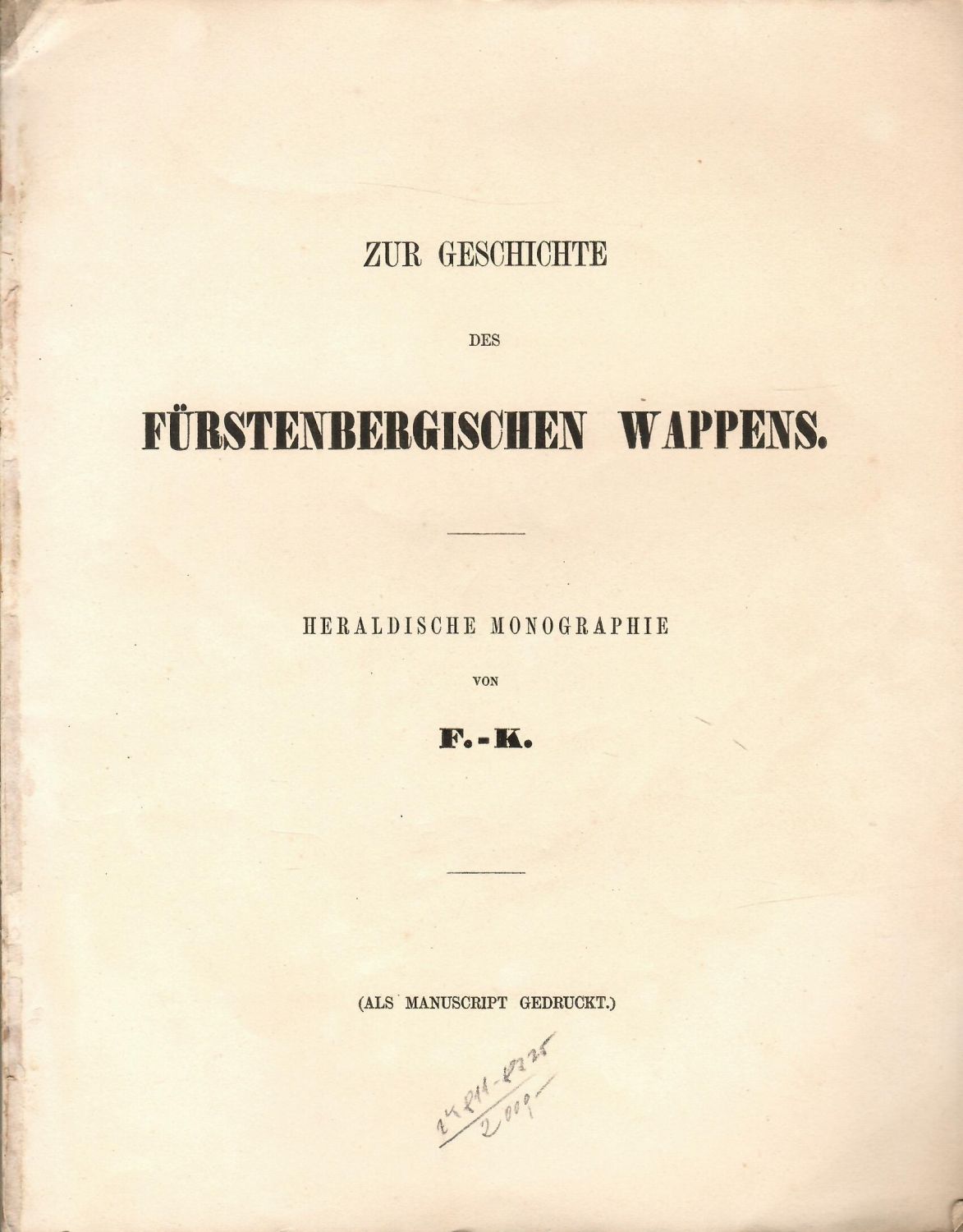 Zur Geschichte des Fürstenbergischen Wappens. Heraldische Monographie von F.-K. (Als Manuscript gedruckt)