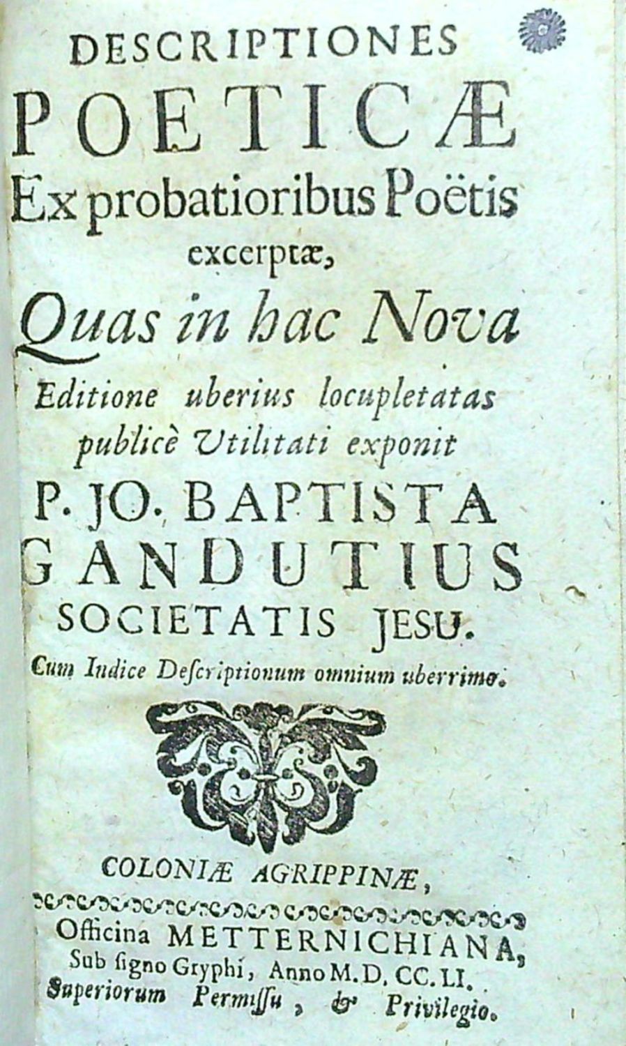 DESCRIPTIONES POETICAE Ex probatioribus Poëtis excerptae, Quas in hac Nova Editione uberius locupletatas publice Utilitati exponit ....