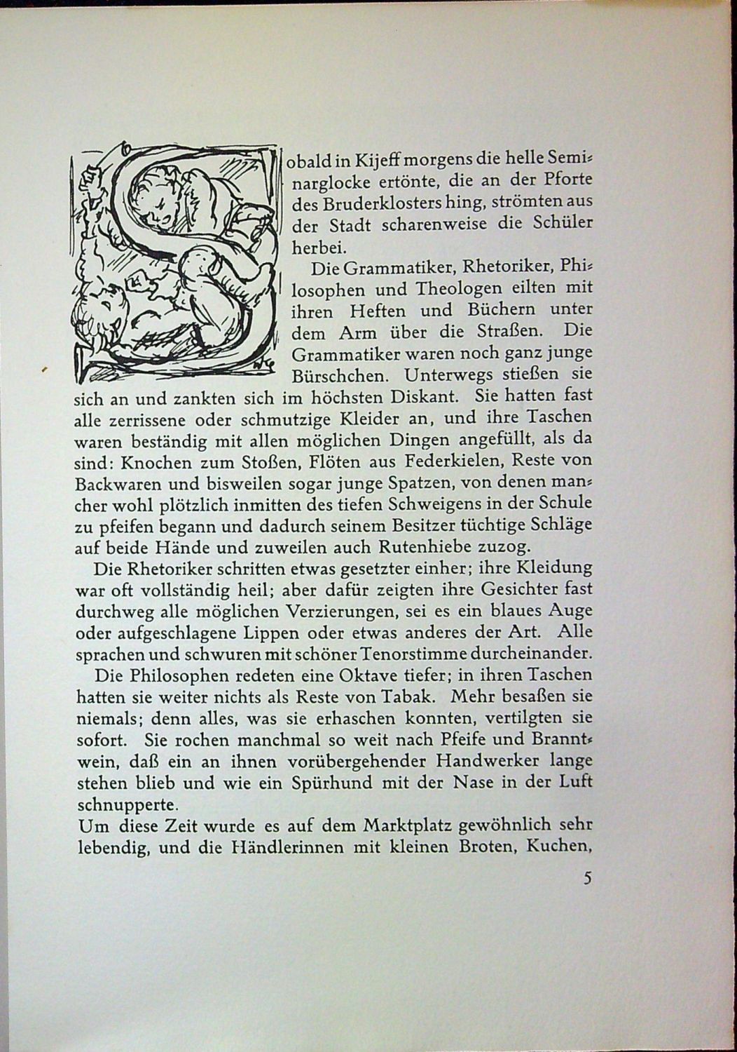 | Ilustrace: | Walter Klemm - 6 původních celostr. litografií, autorem vpravo dole tužkou podepsaných. Na tit. listu a v závěru ilustr. viněty, vstupní Klemmova iniciála v ilustrativní kompozici. |