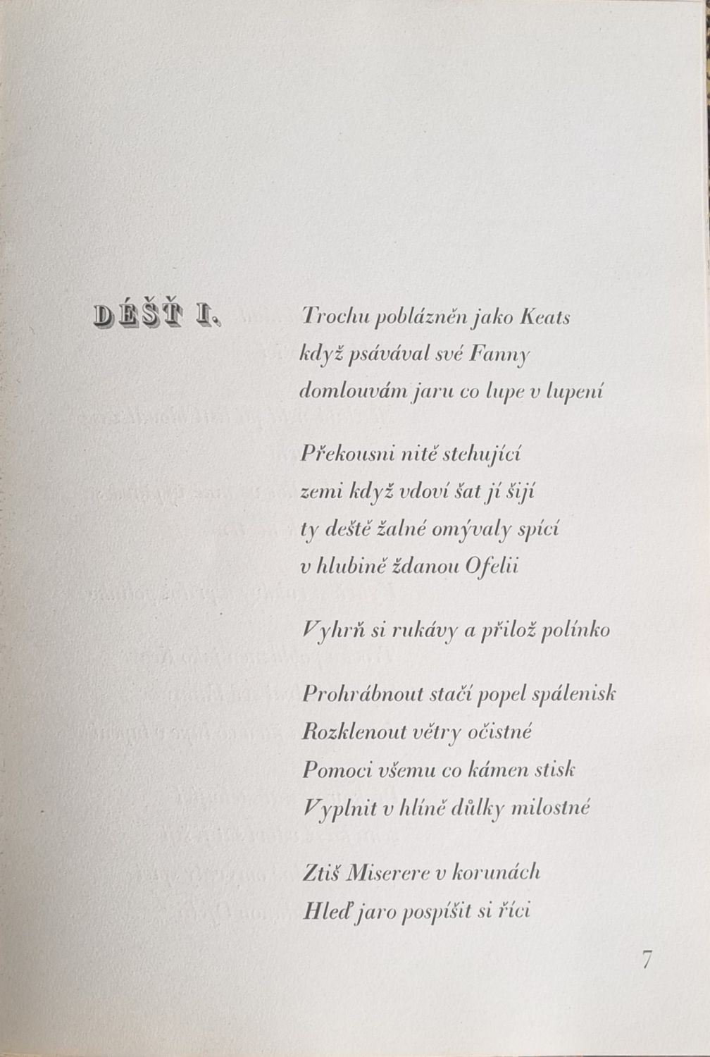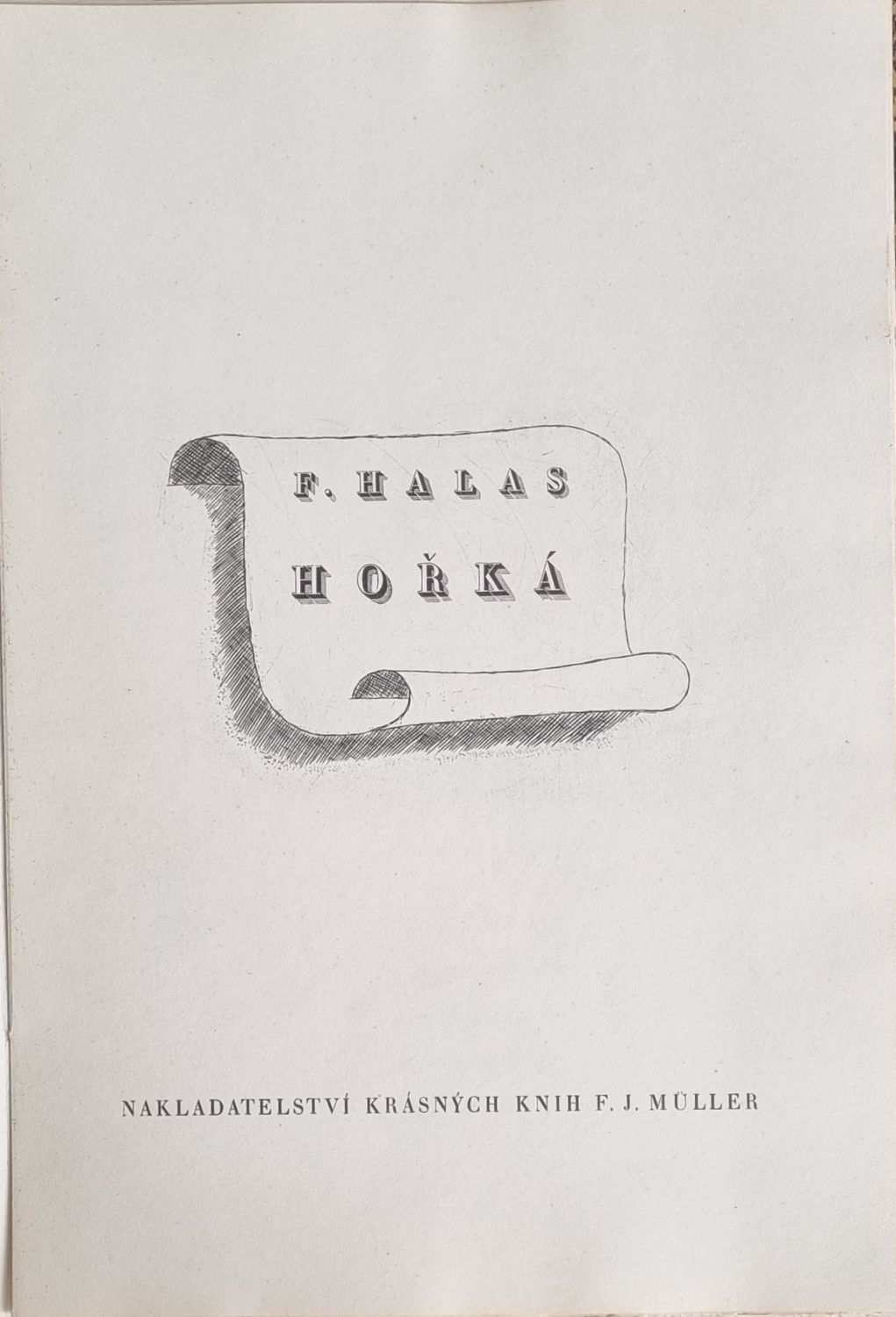 Ex. č. 102 ze 300 vydaných. Na tit. listu a v tiráži dvě drobné suché jehly, v textu dvě celostránkové od Fr. Tichého, na předním palistu podpisy Fr. Tichého a Fr. Halase, knihu upravil F. J. Müller. Původní přebal ze škrobového papíru s chlopněmi (přes zlacený podklad černě nanesené nepravidelné skvrny) a s Tichého bíle tlačenou ilustrací na přední straně. Papír ve hřbetu zčásti chybí, přední strana obálky je zčásti od knižního bloku uvolněná.