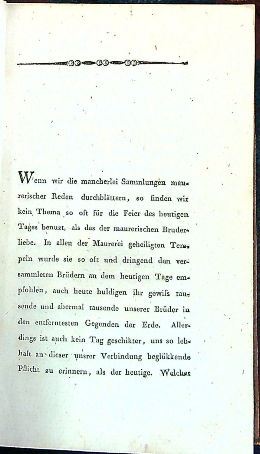 Holzmann-Bohatta III,345<br>Tištěno antikvou, v textu několik mezi titulních listů, ozdobné tyče v záhlaví jednotlivých oddílů.<br>Dobová vazba s kartonovými deskami potaženými mramorovaným papírem, kožený hřbet a nárožnice, ve hřbetu 4 vazy, přes horní a spodní pole přelepen starý pap. štítek s číslem, barvené ořízky. Na tit. listu staré vlastnické značky ve vavřínovém věnci, na tit. listu a na dalších 2 listech stará razítka drážďanské zednářské lóže "Loge z. goldenen Apfel". Na několika listech drobné hnědé skvrnky.